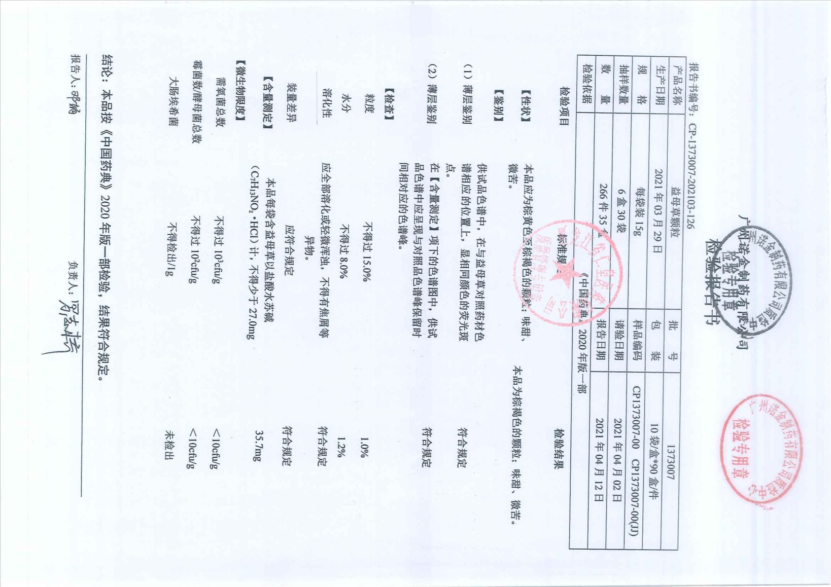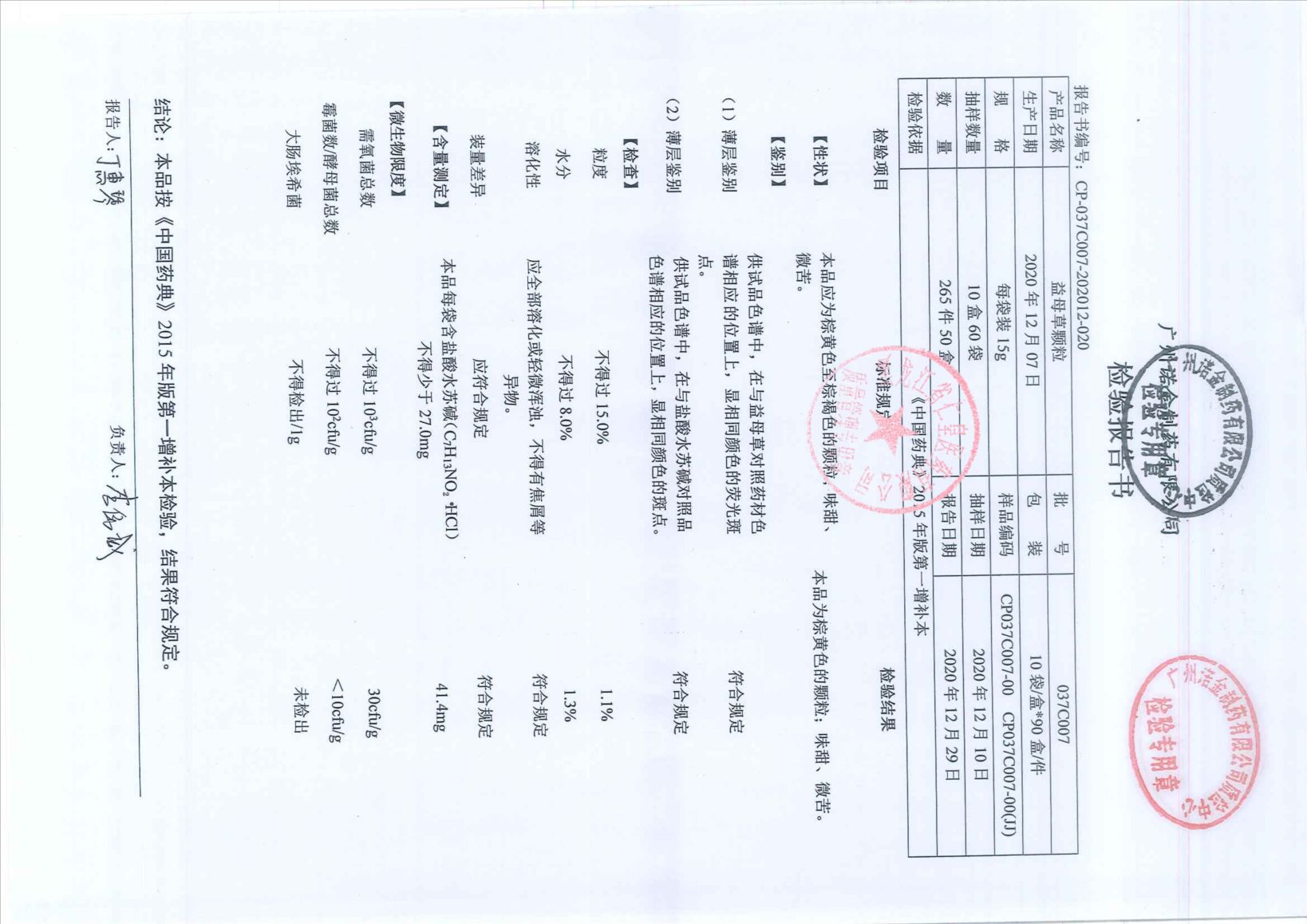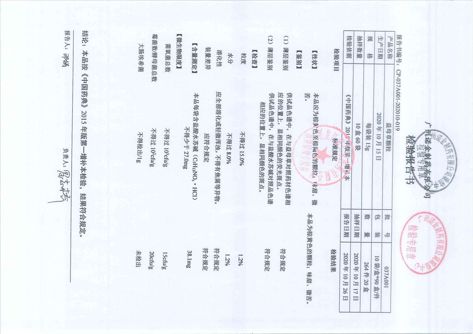 益母草颗粒037C0