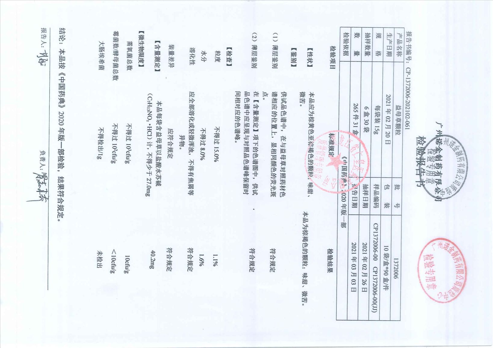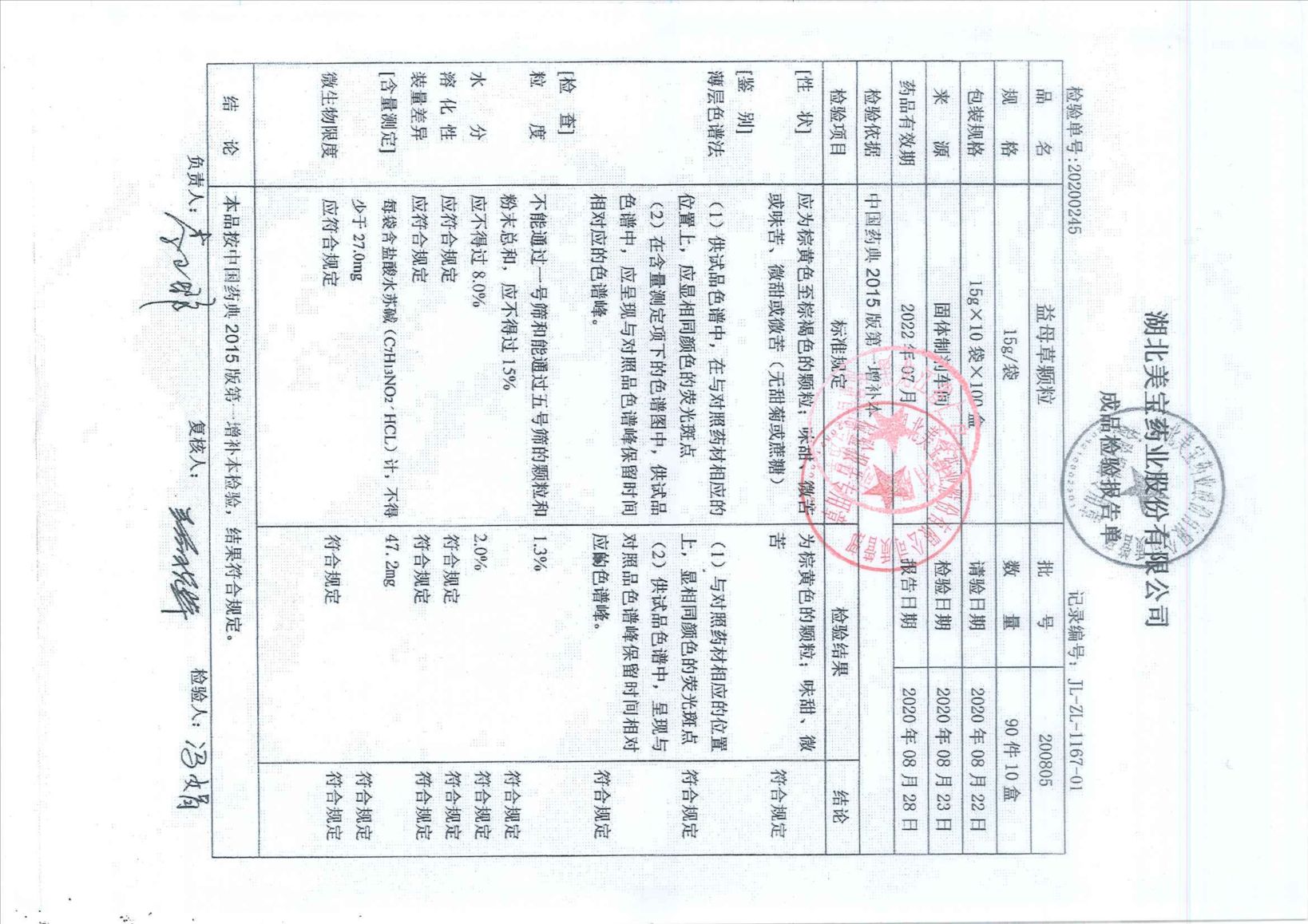 益母草颗粒20080