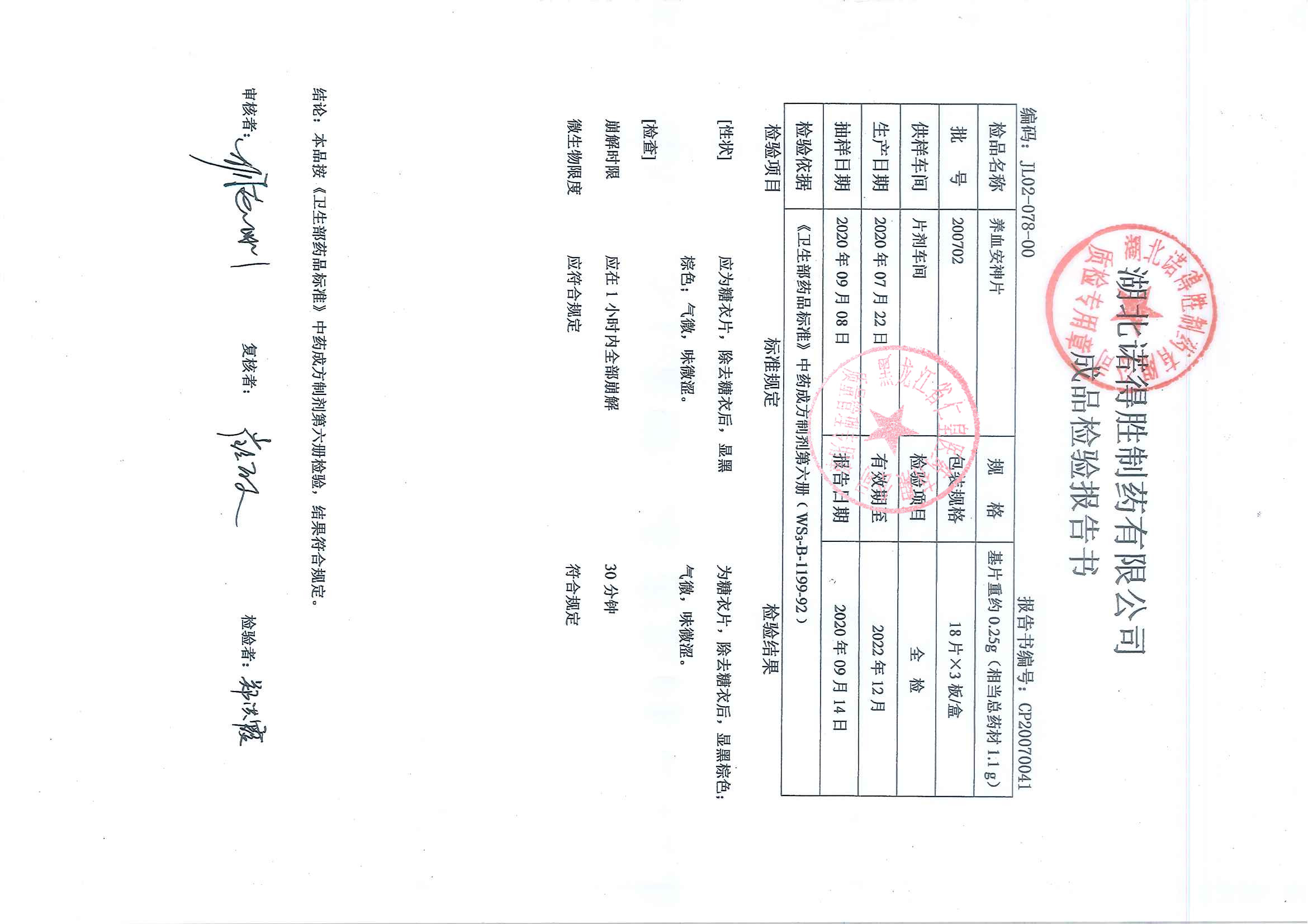 养血安神片20070