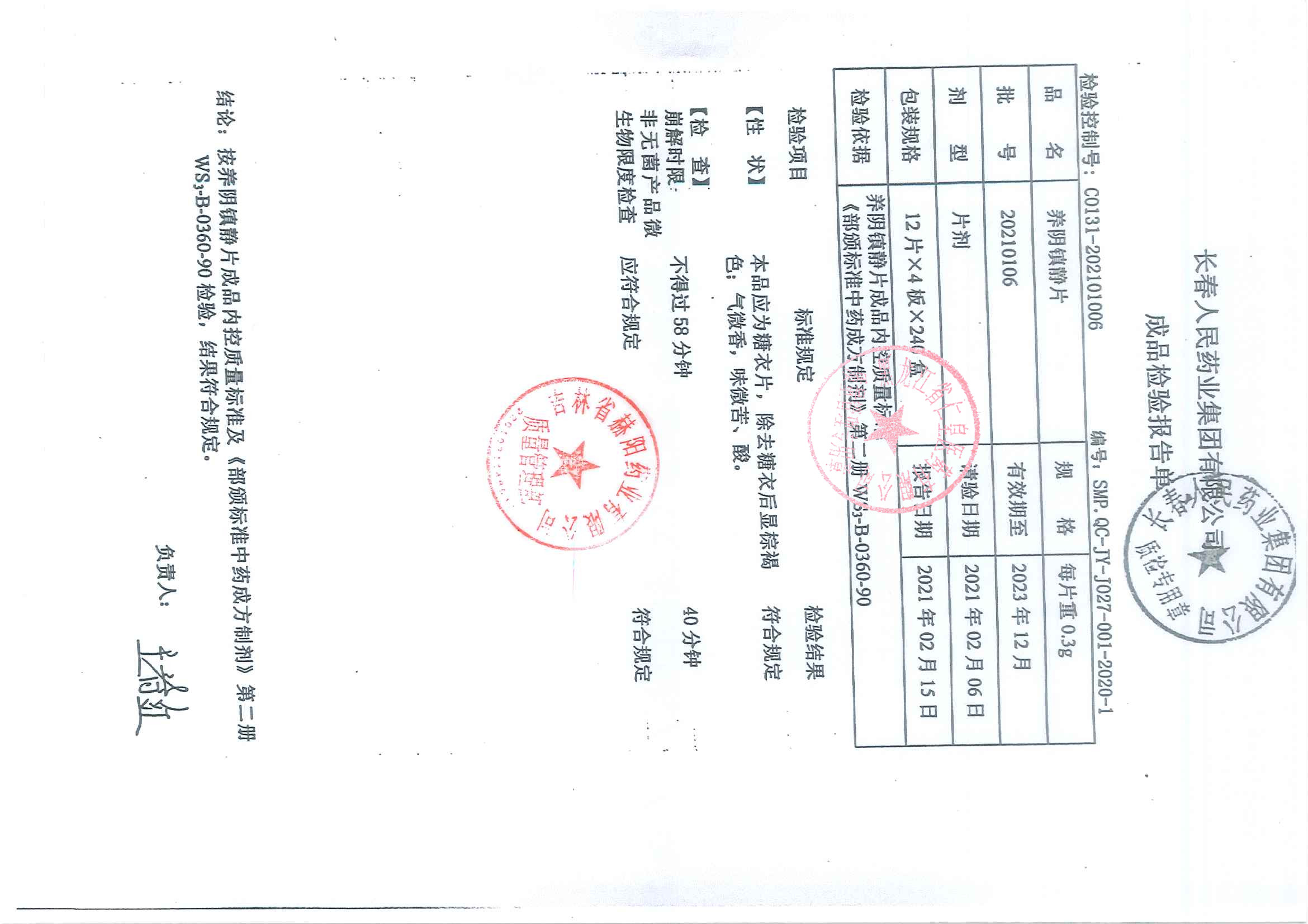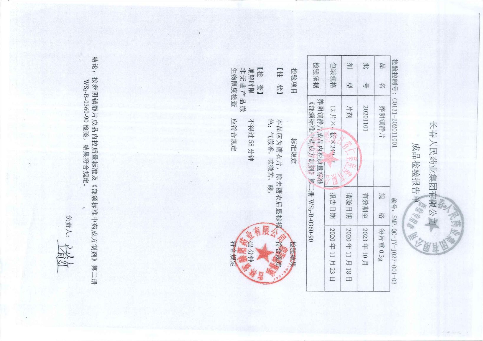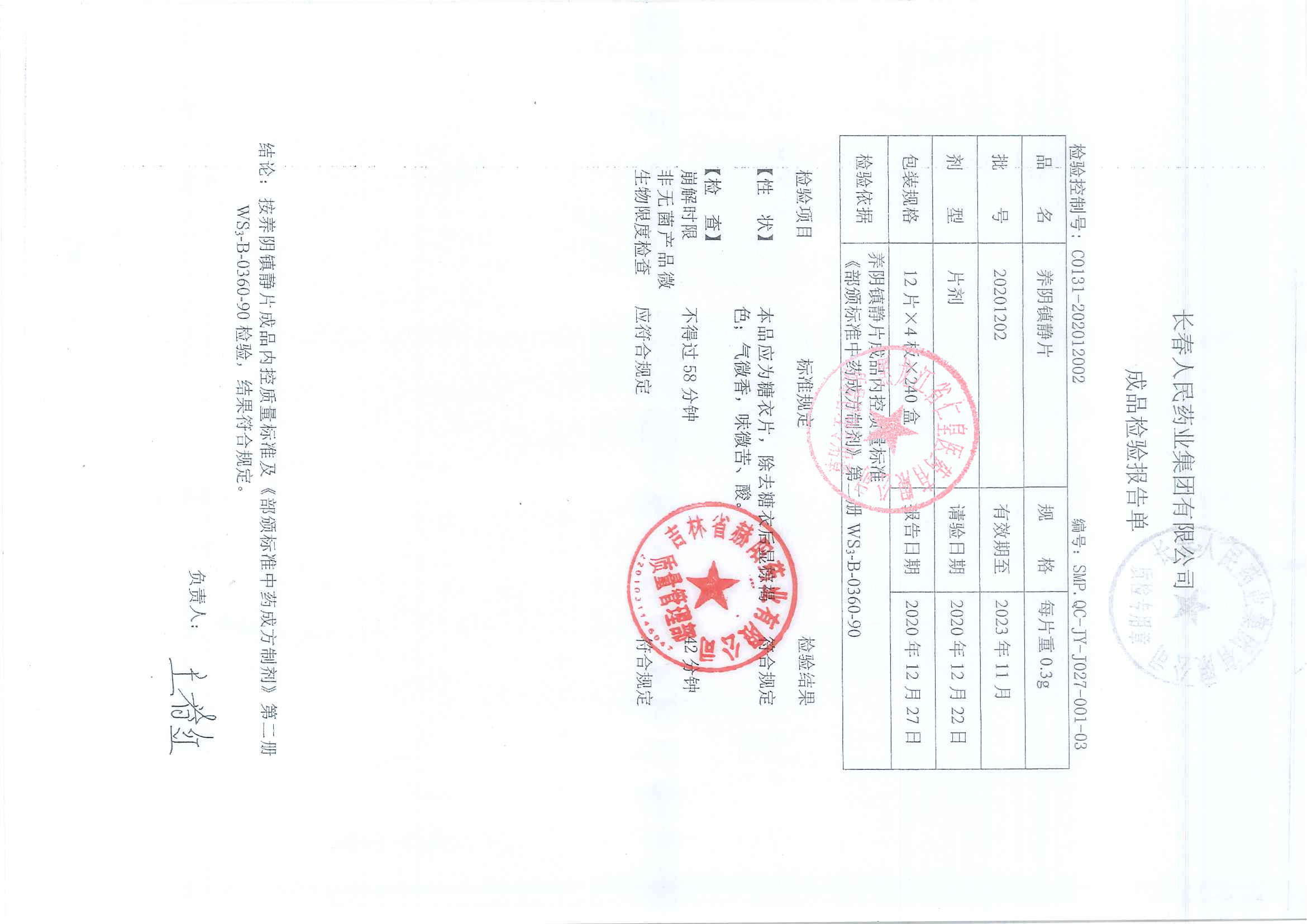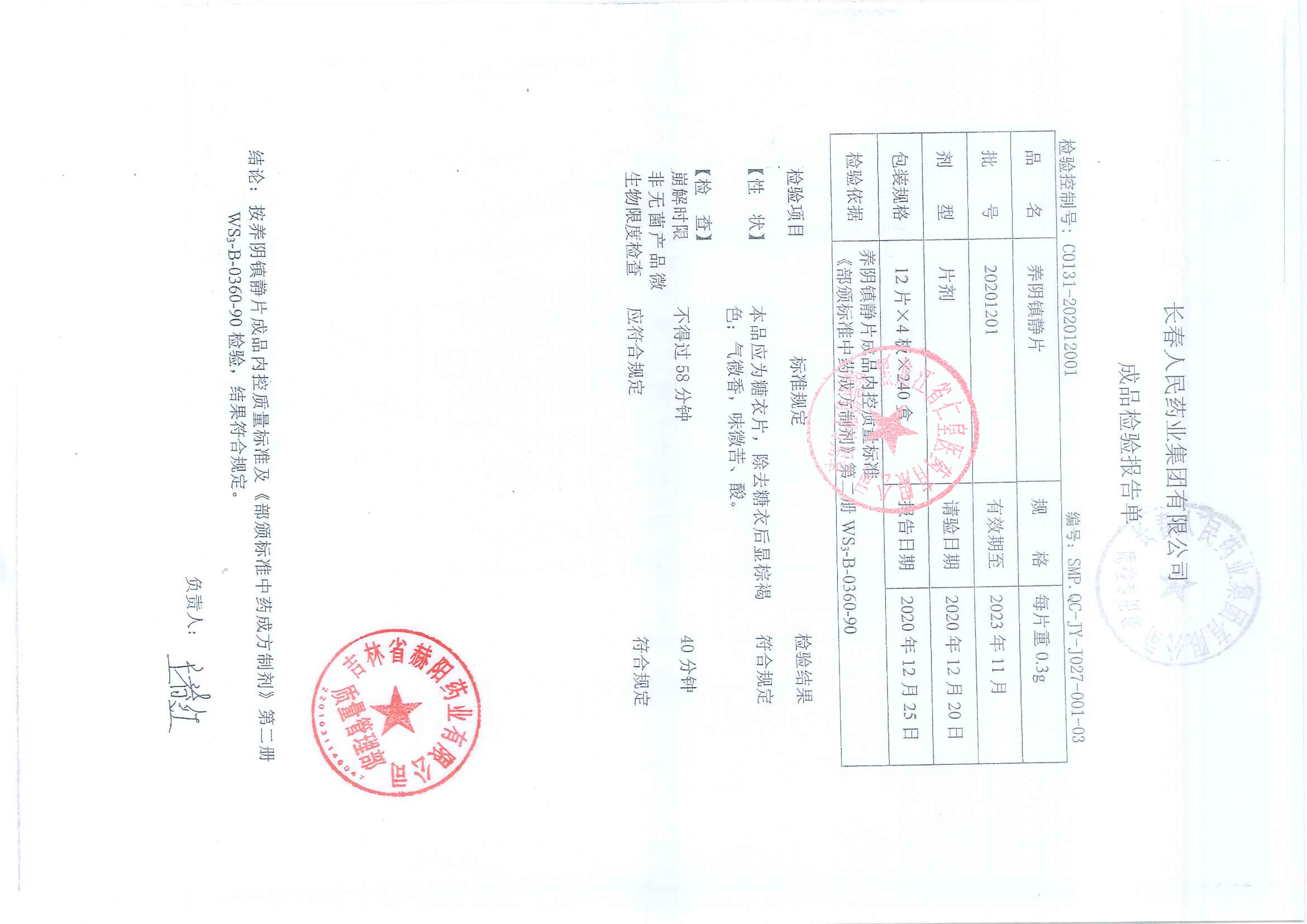 养阴镇静片20201