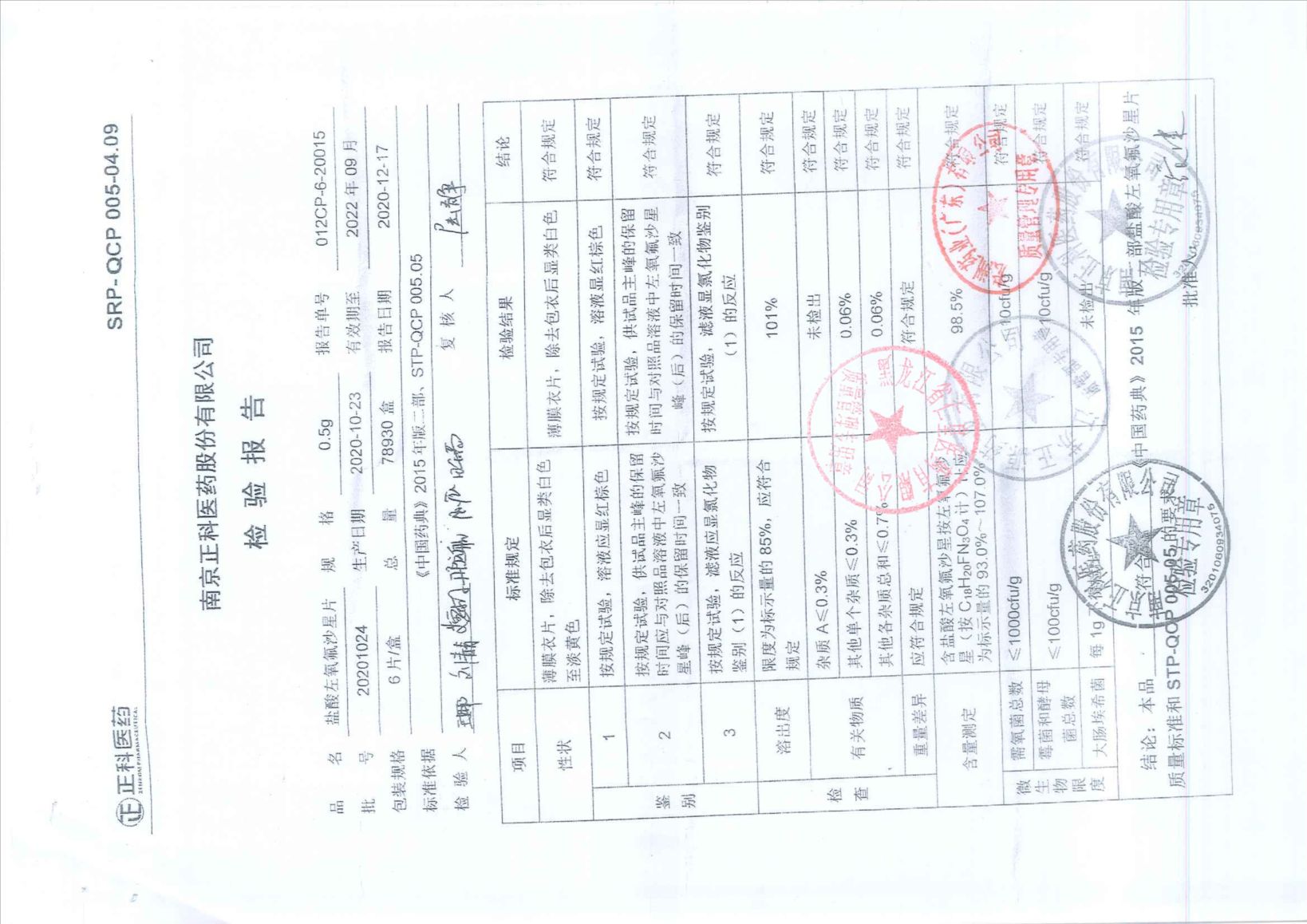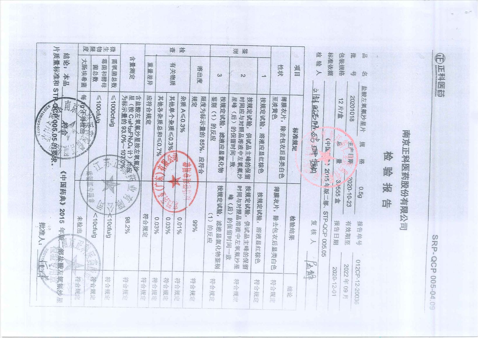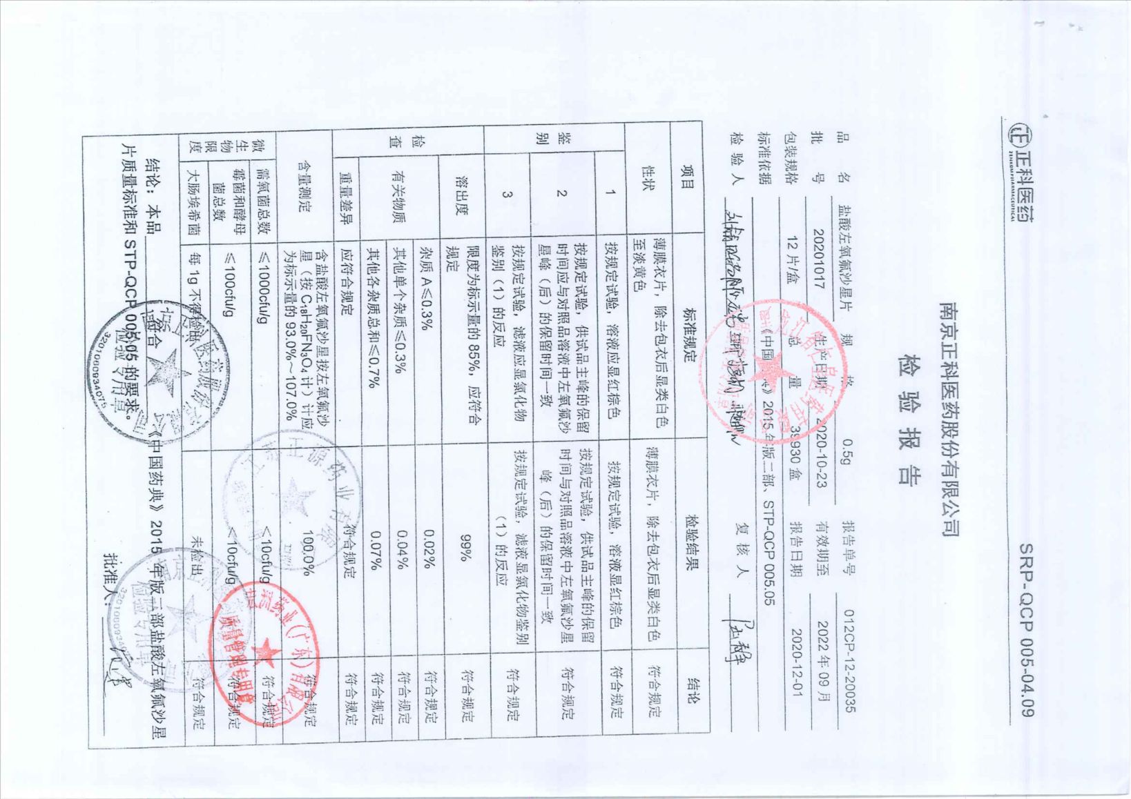盐酸左氧氟沙星片20