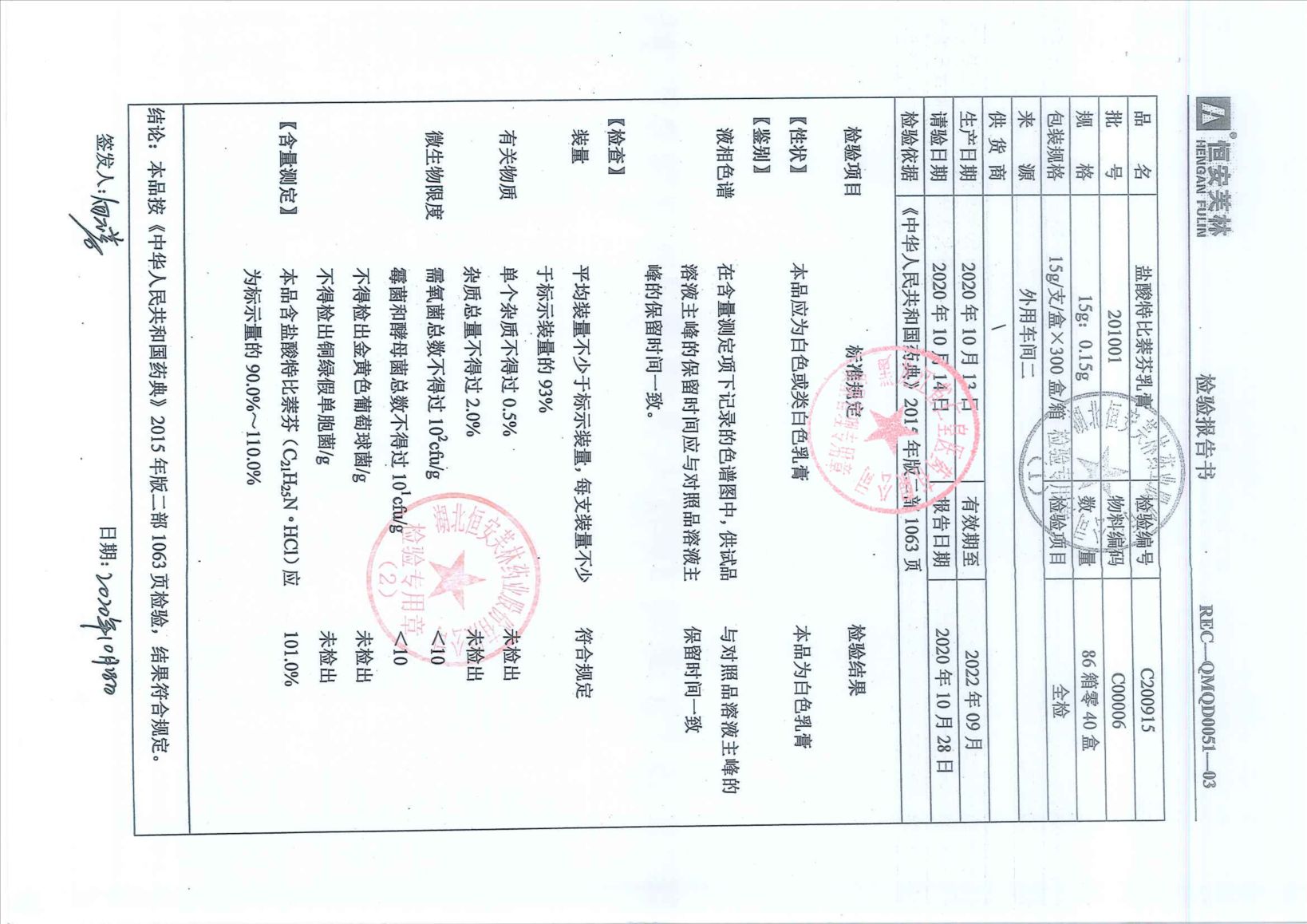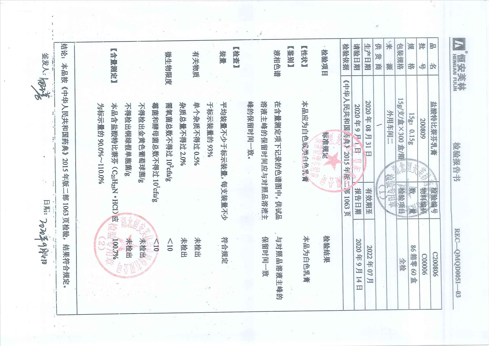 盐酸特比萘芬乳膏20