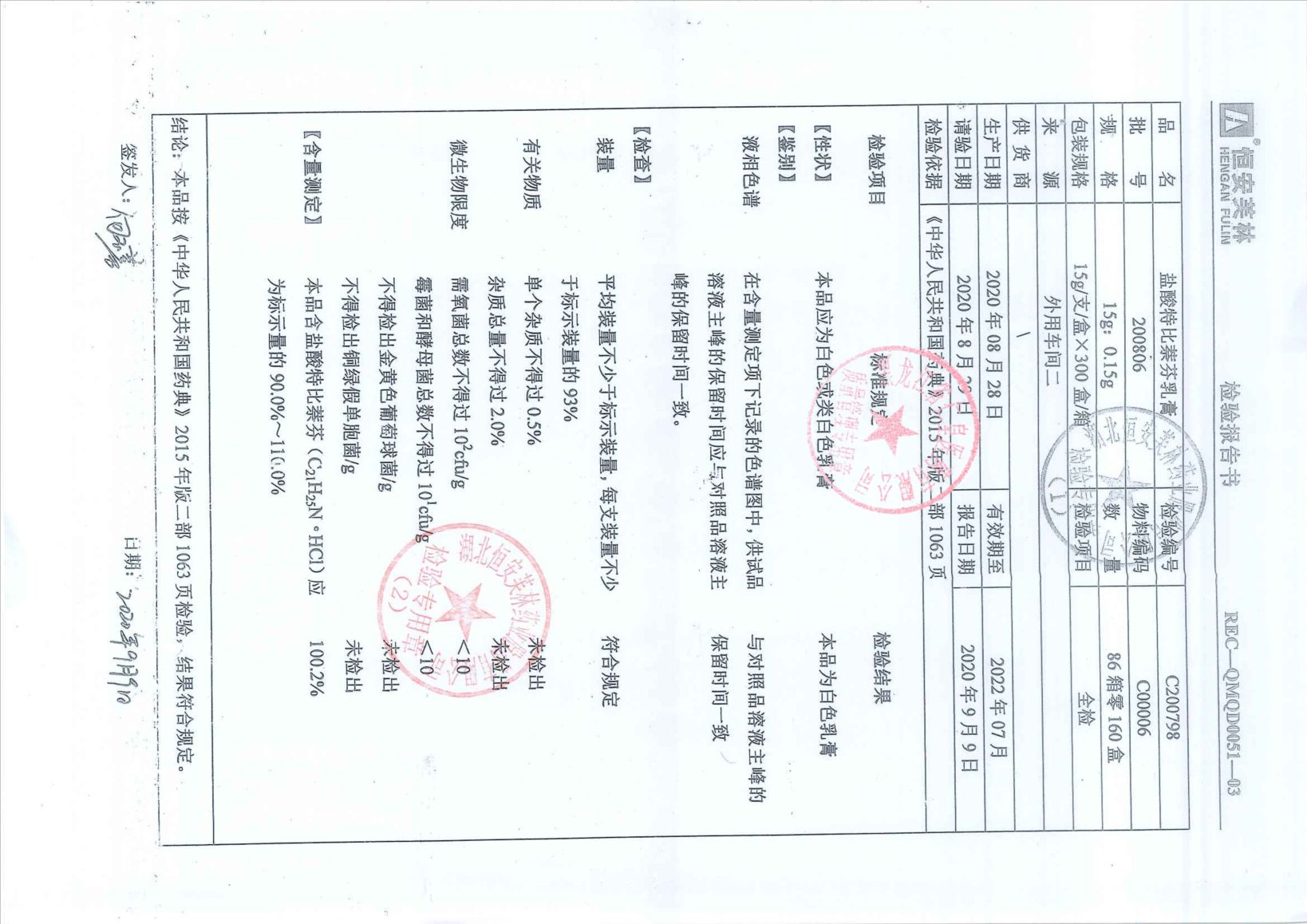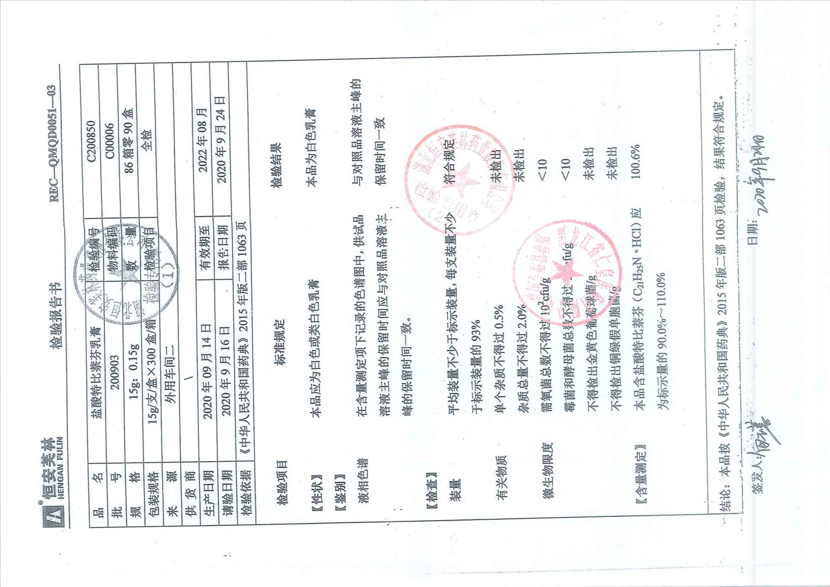 盐酸特比萘芬片201