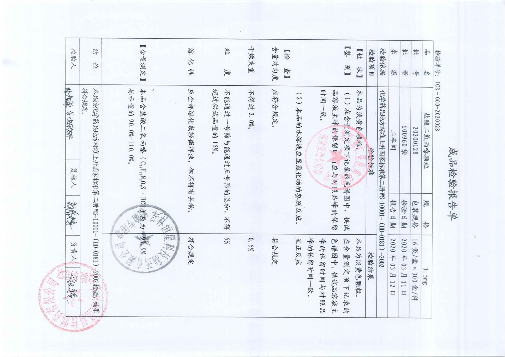 盐酸二氧丙嗪颗粒20