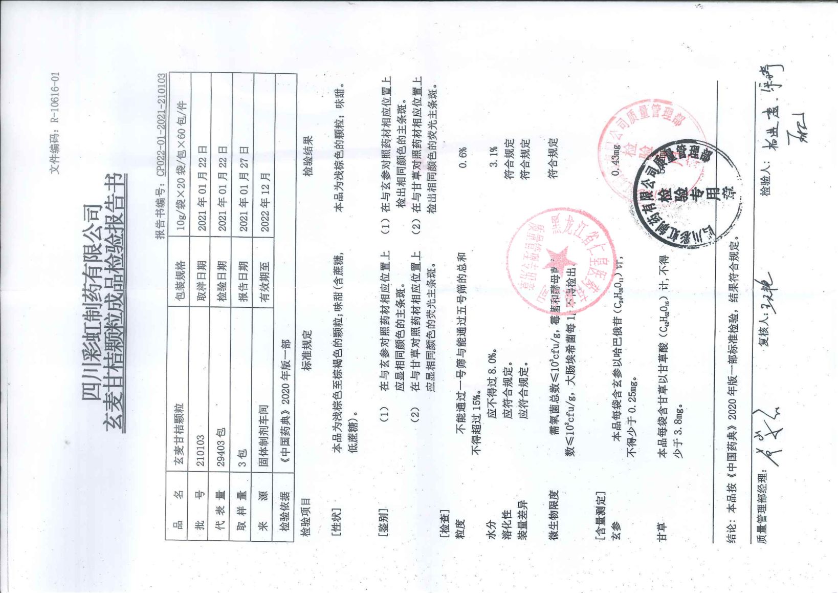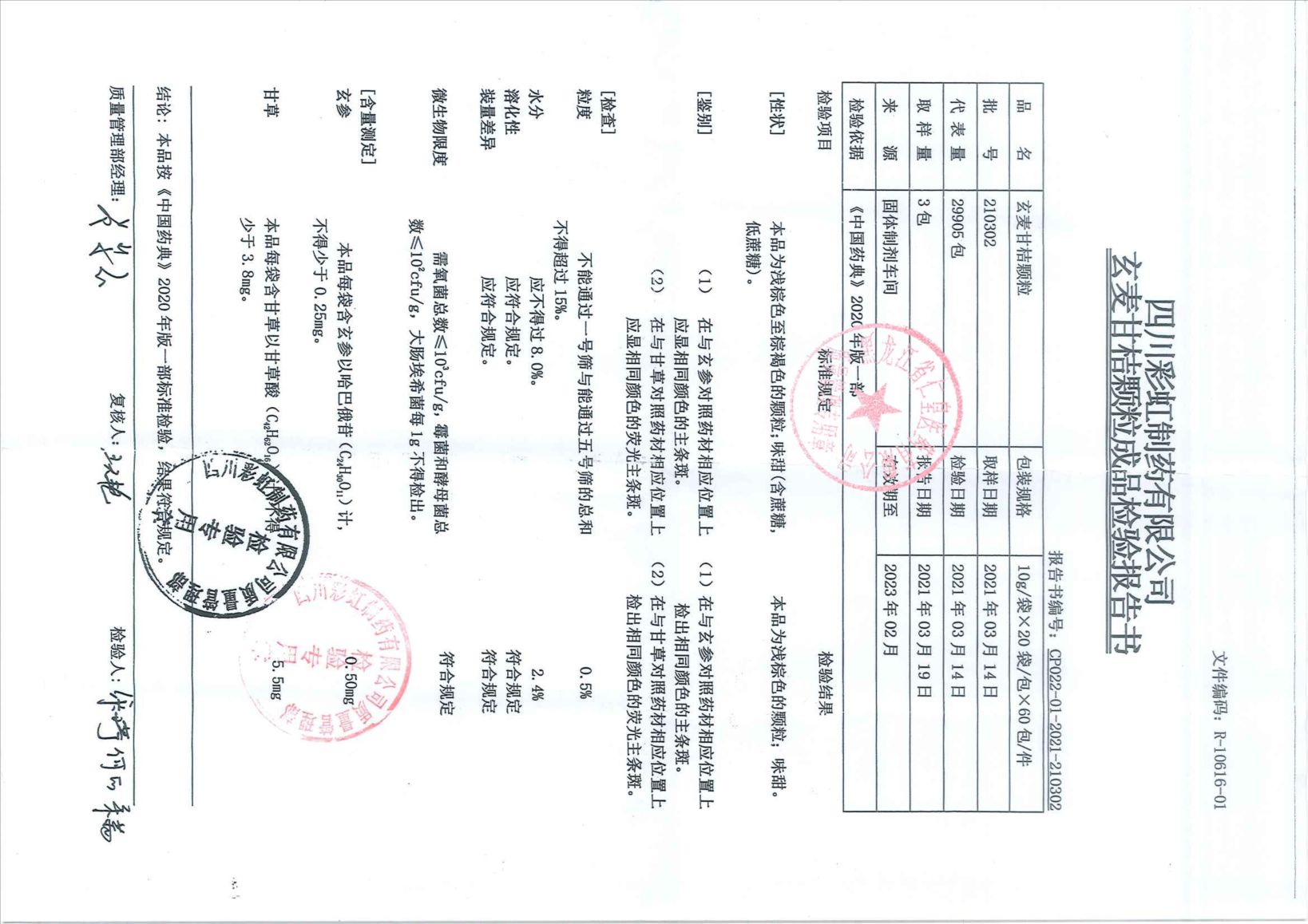 玄麦甘桔颗粒2101