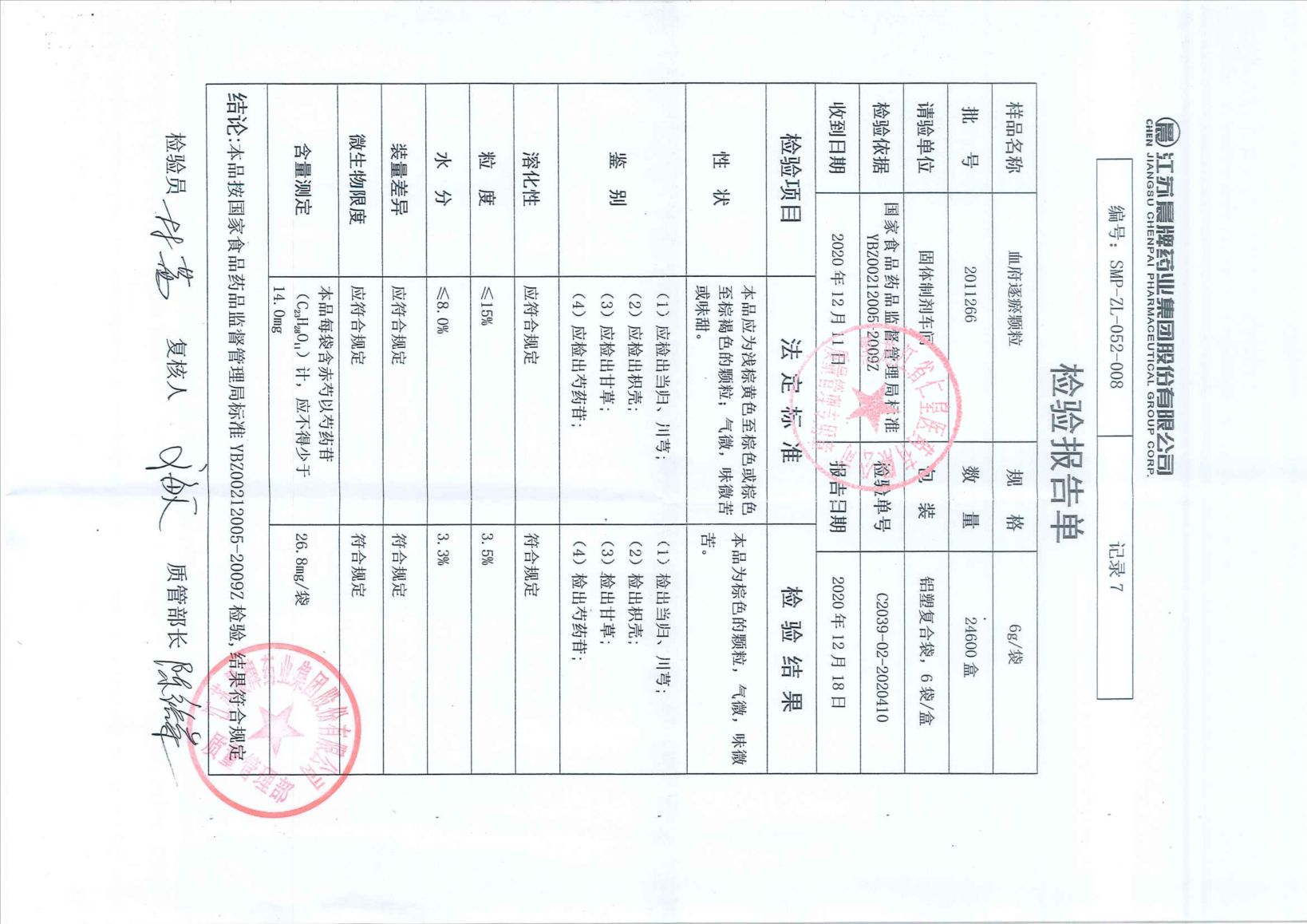血府逐瘀颗粒2011