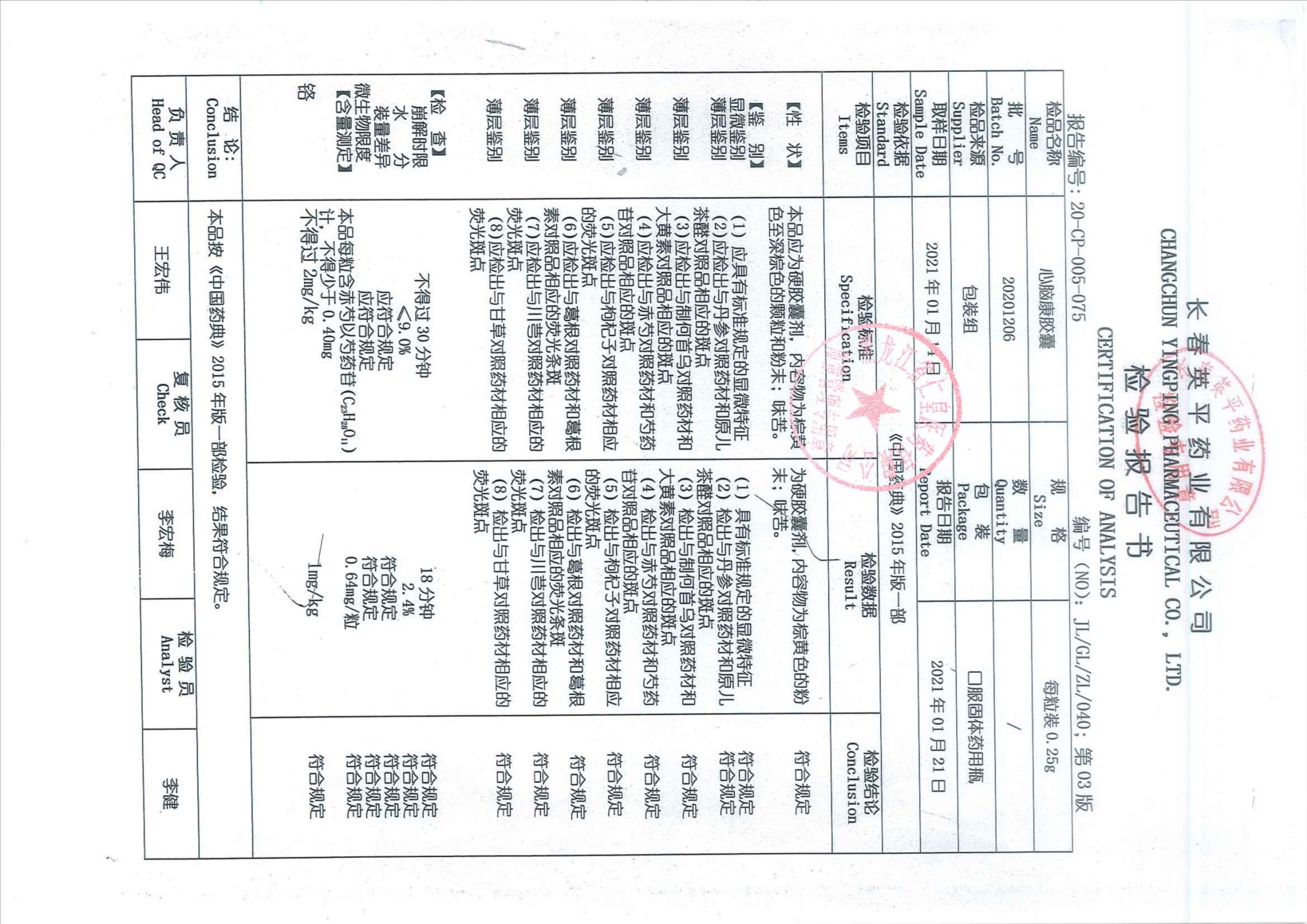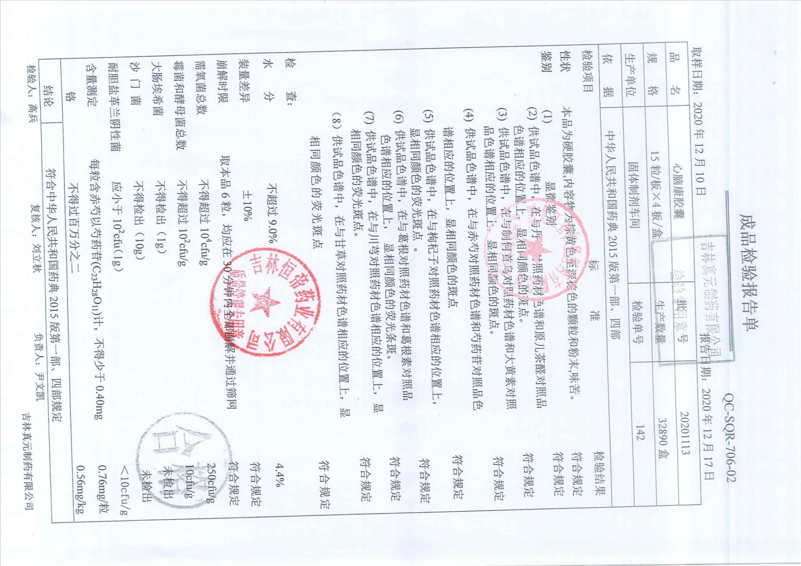 心脑康胶囊20201