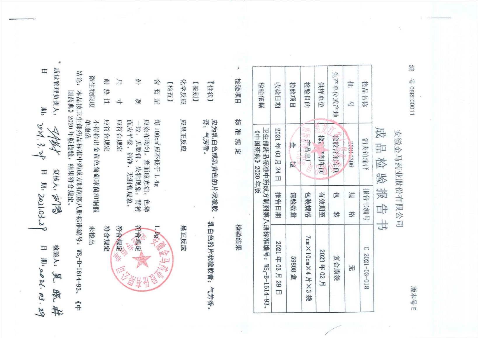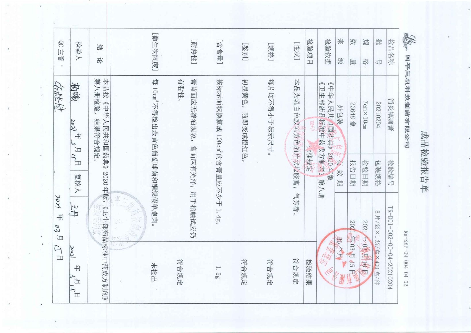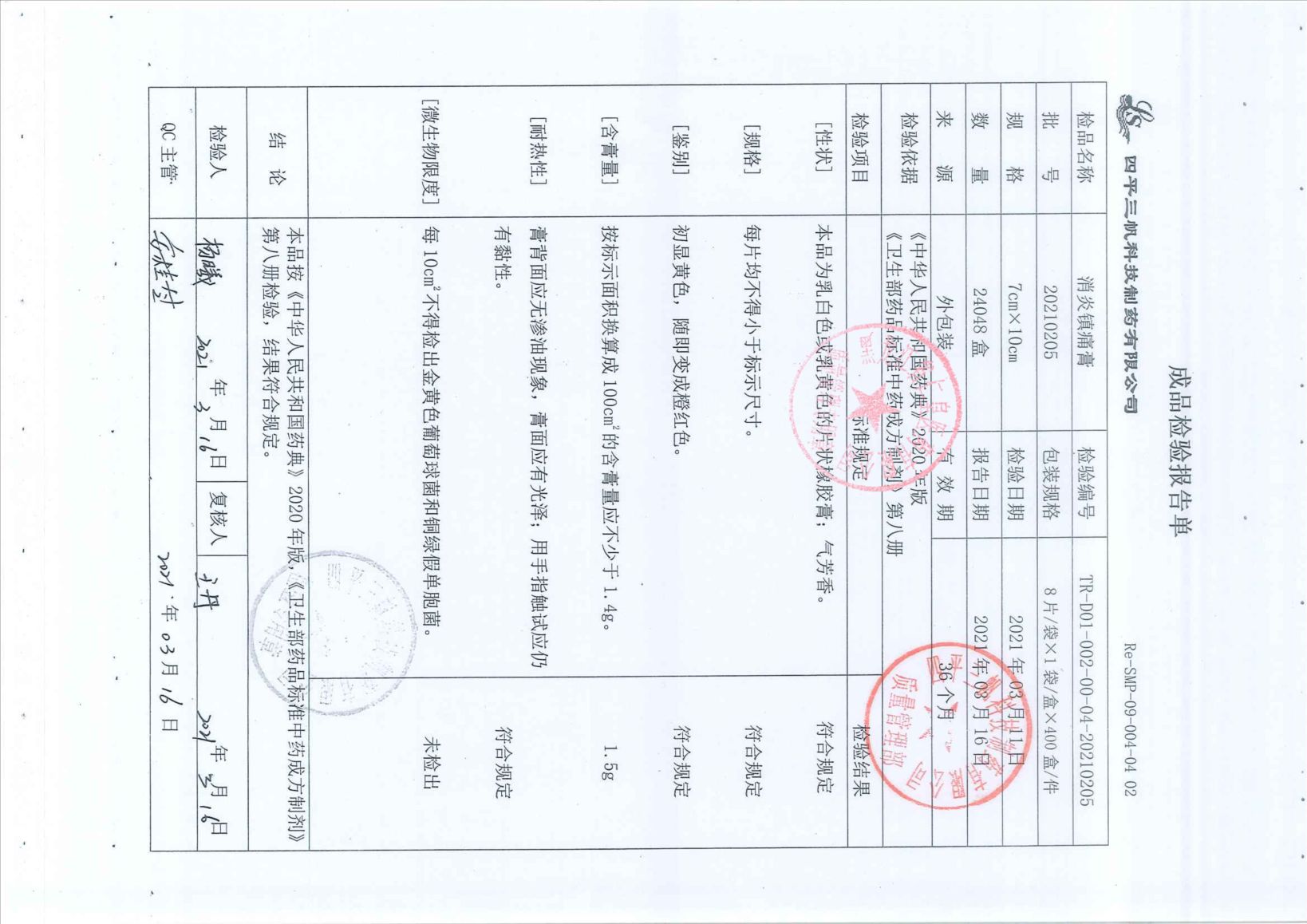 消炎镇痛膏20210