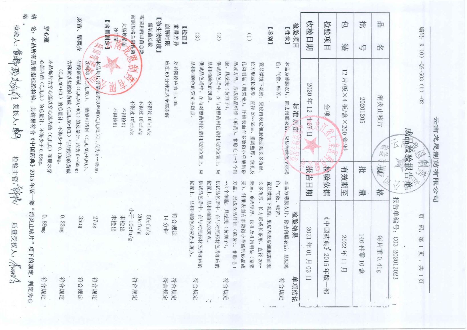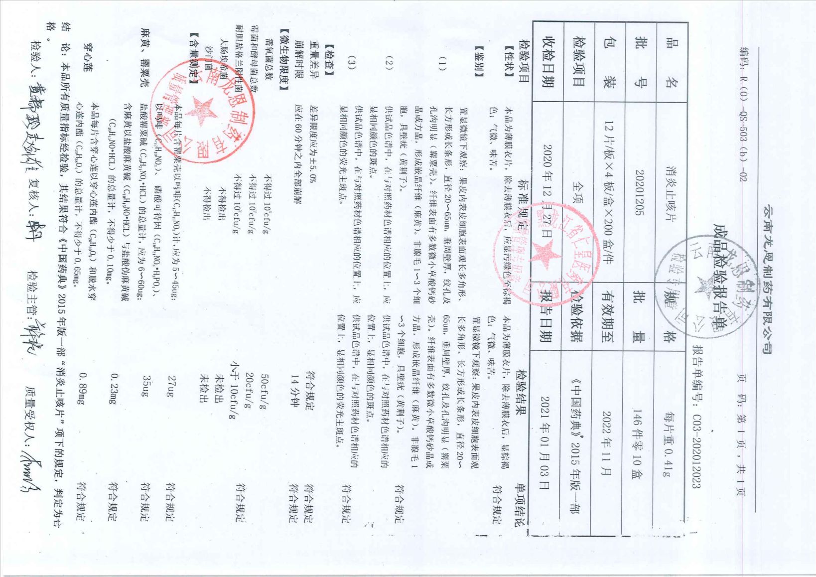 消炎止咳片20201