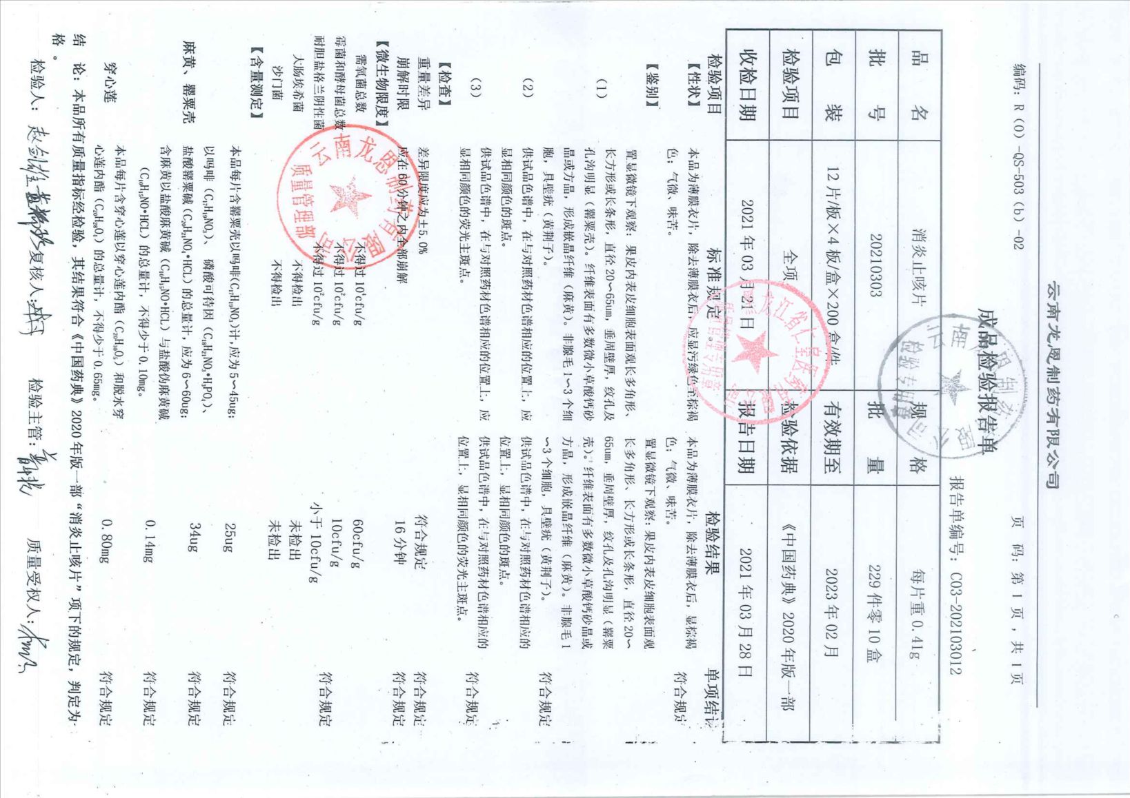 消炎止咳片20210
