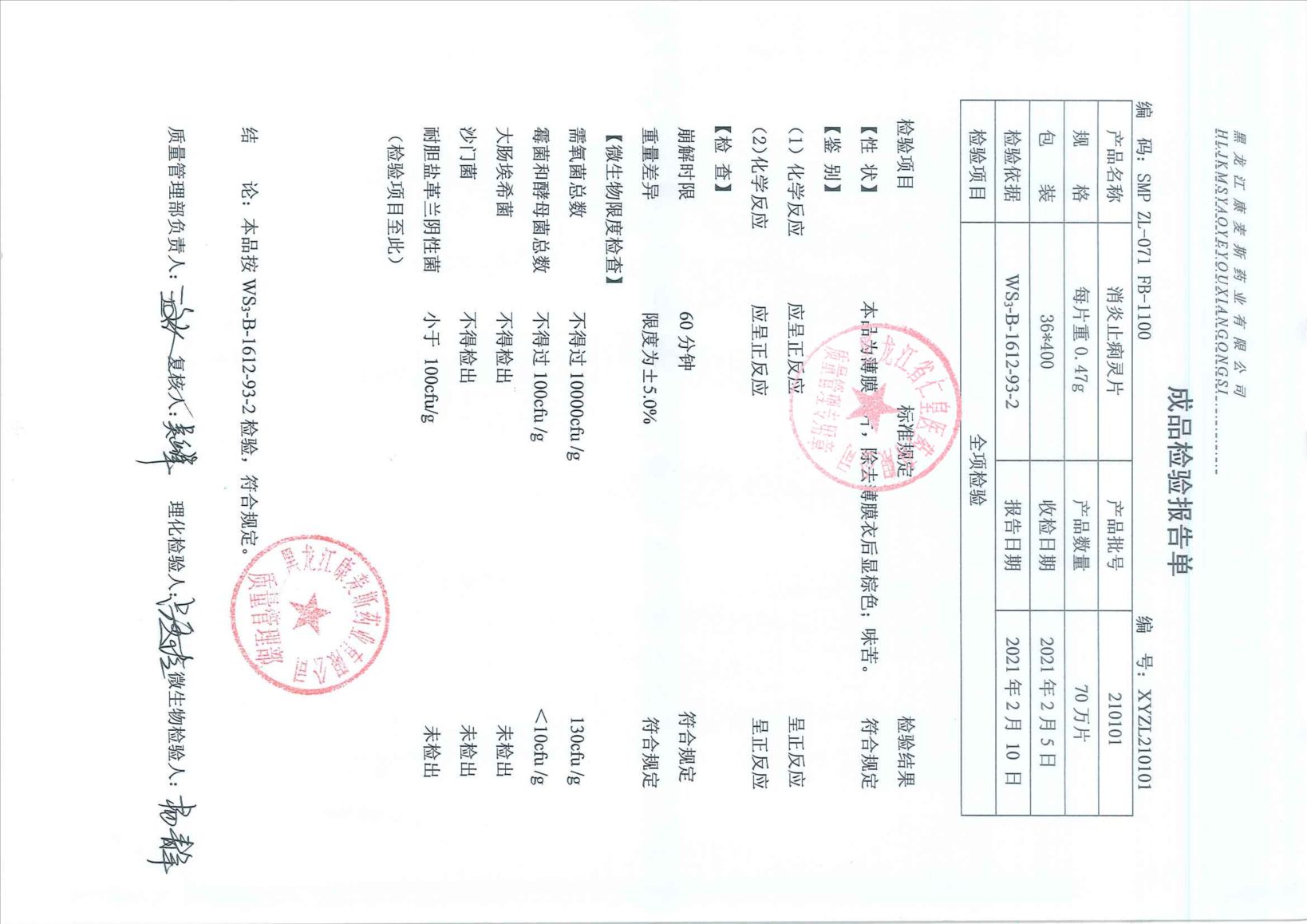 消炎止痢灵片2101