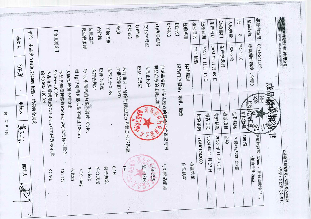 赖氨葡锌颗粒(含糖)