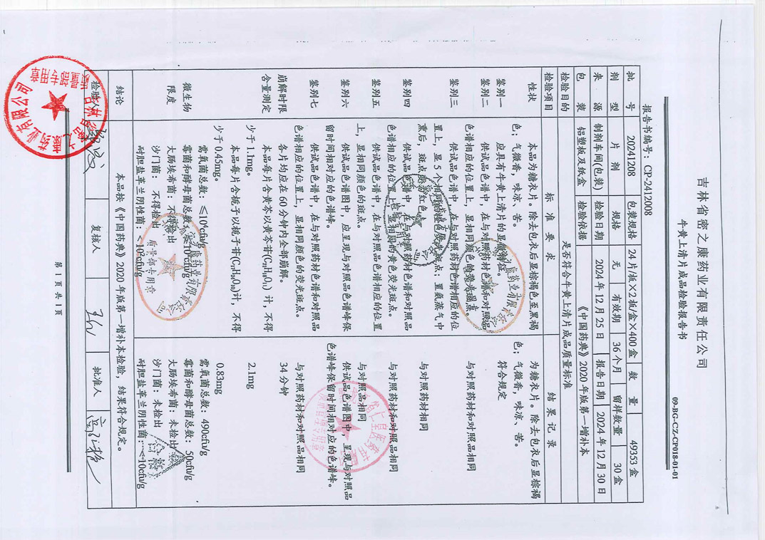牛黄上清片20241