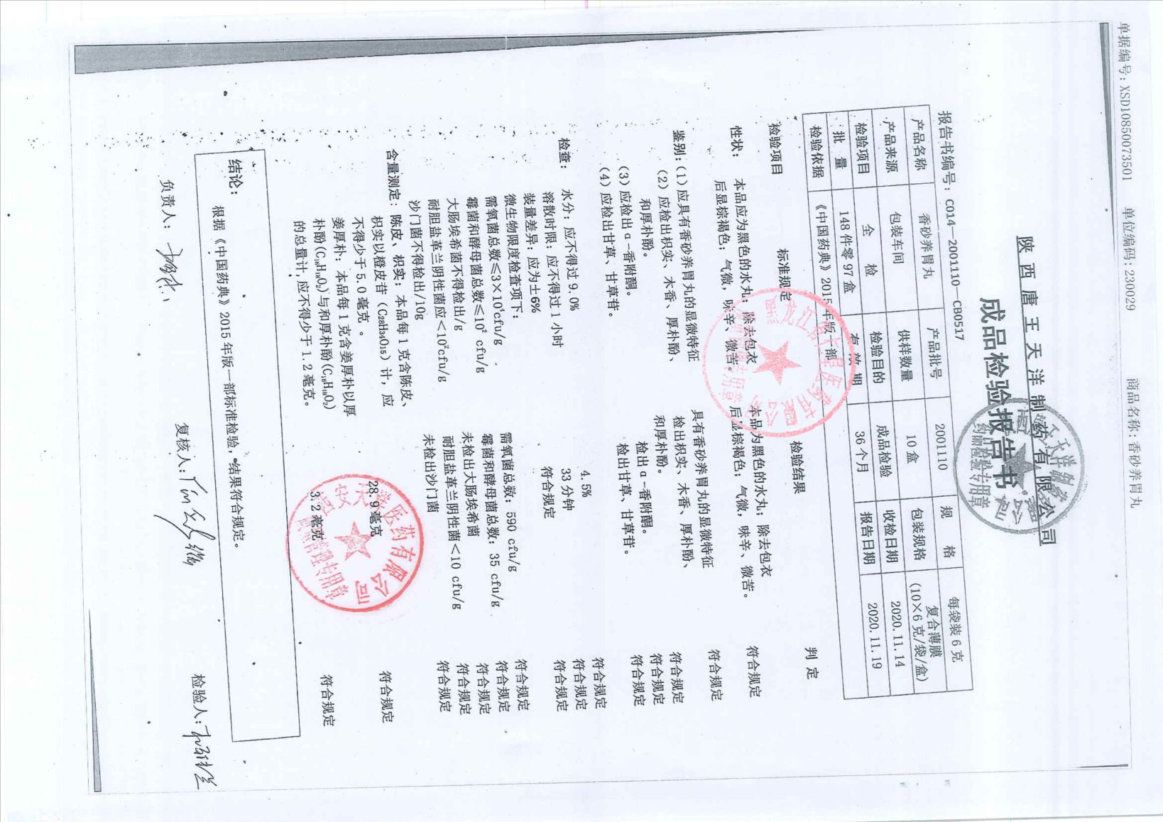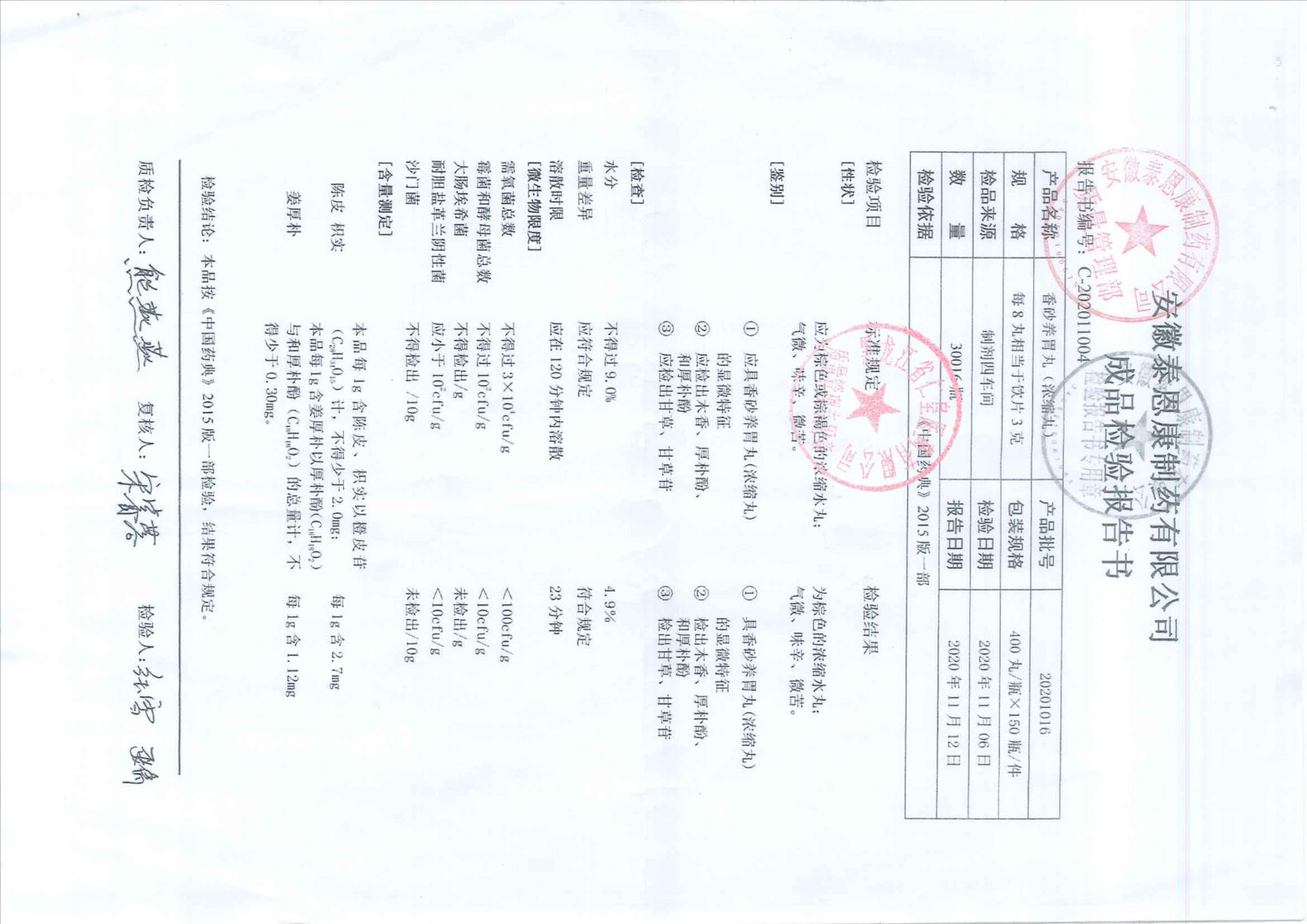 香砂养胃丸20201