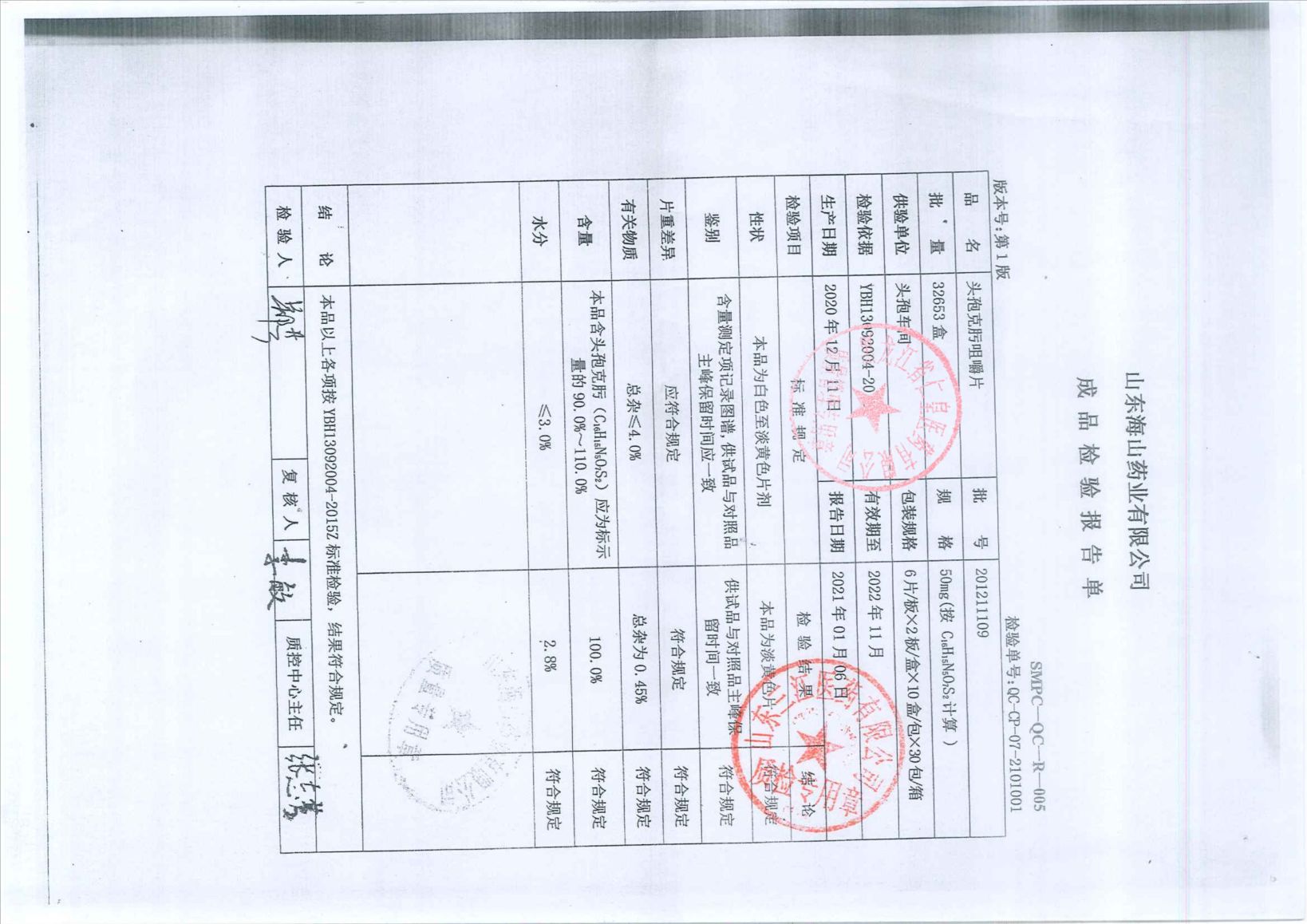 头孢克肟咀嚼片201