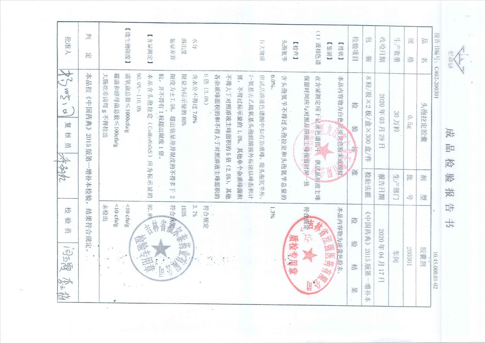 头孢拉定胶囊2003