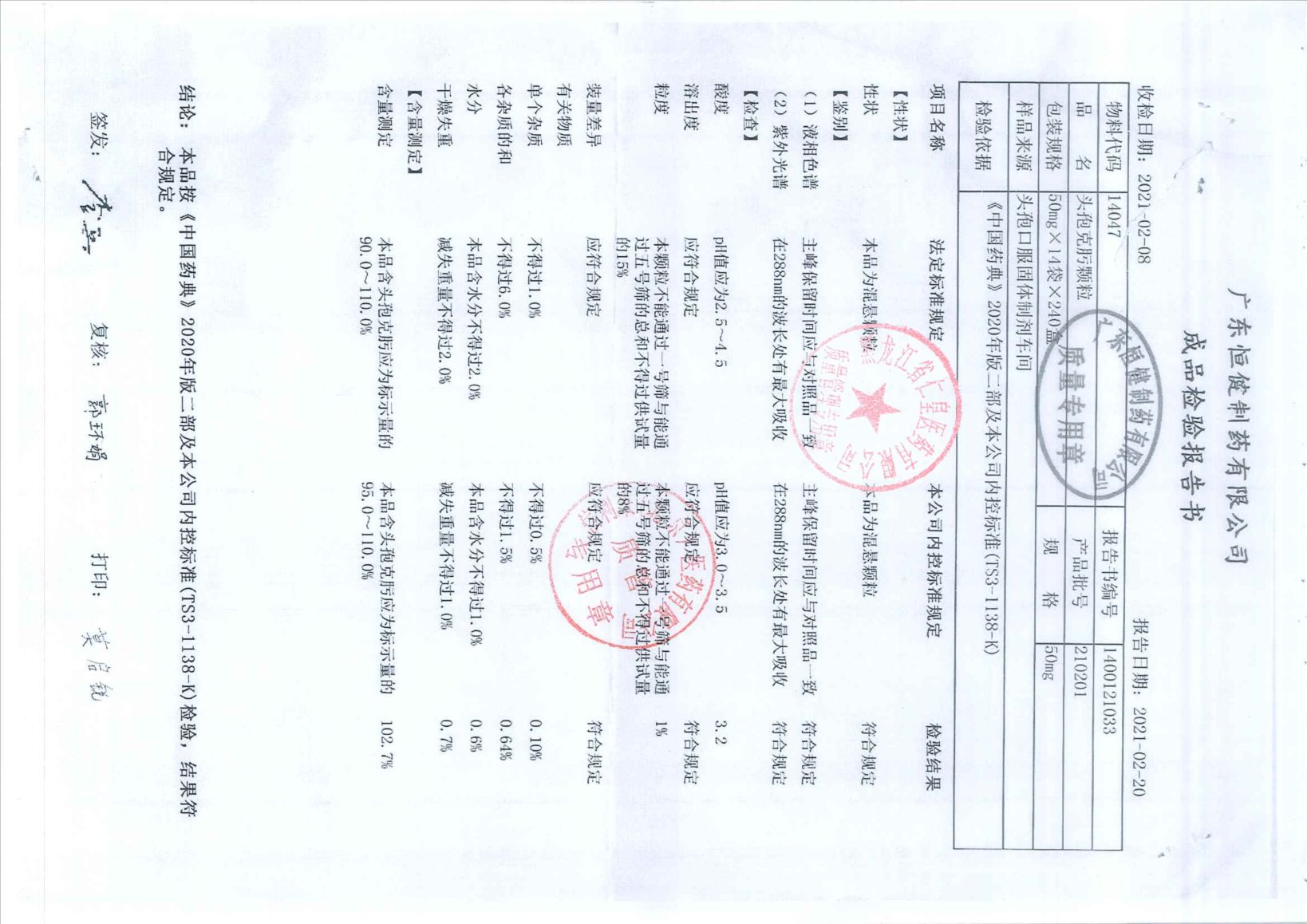 头孢克肟颗粒2102