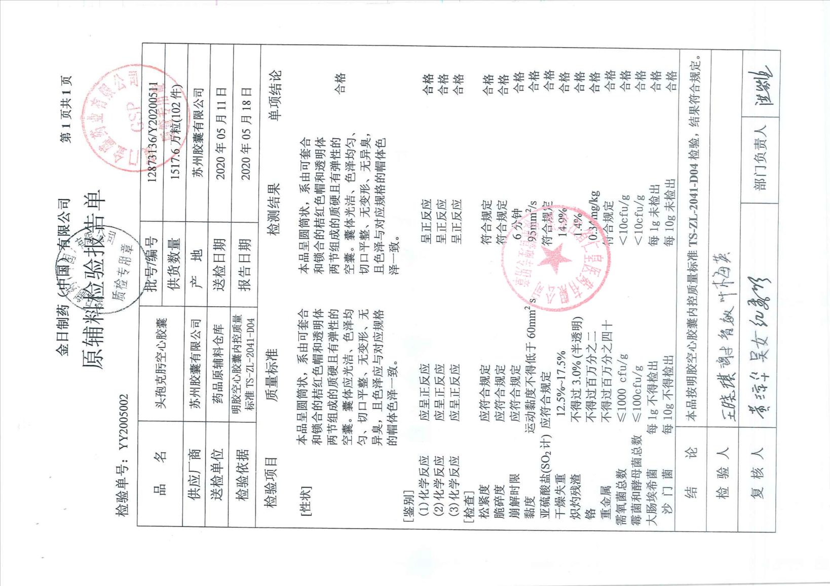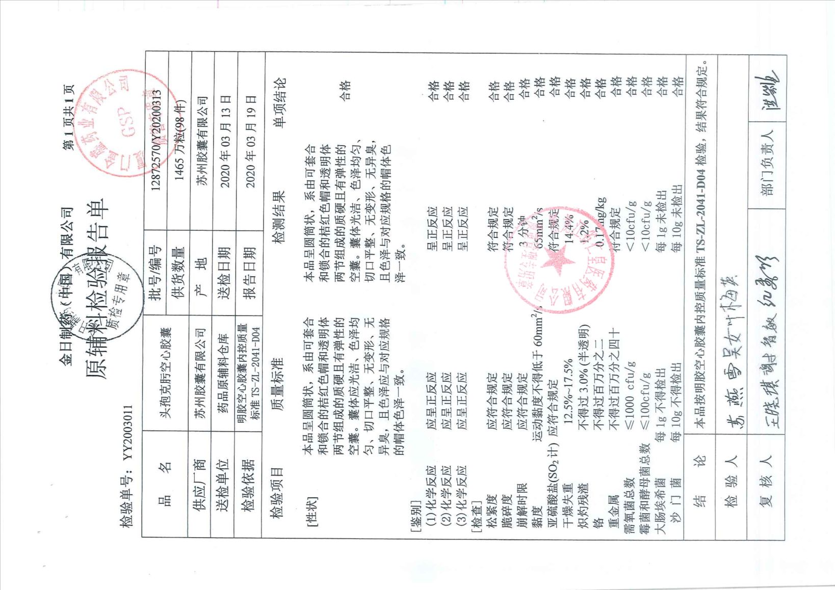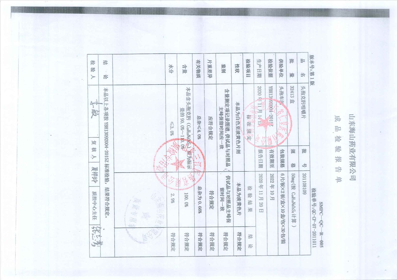 头孢克肟胶囊2011