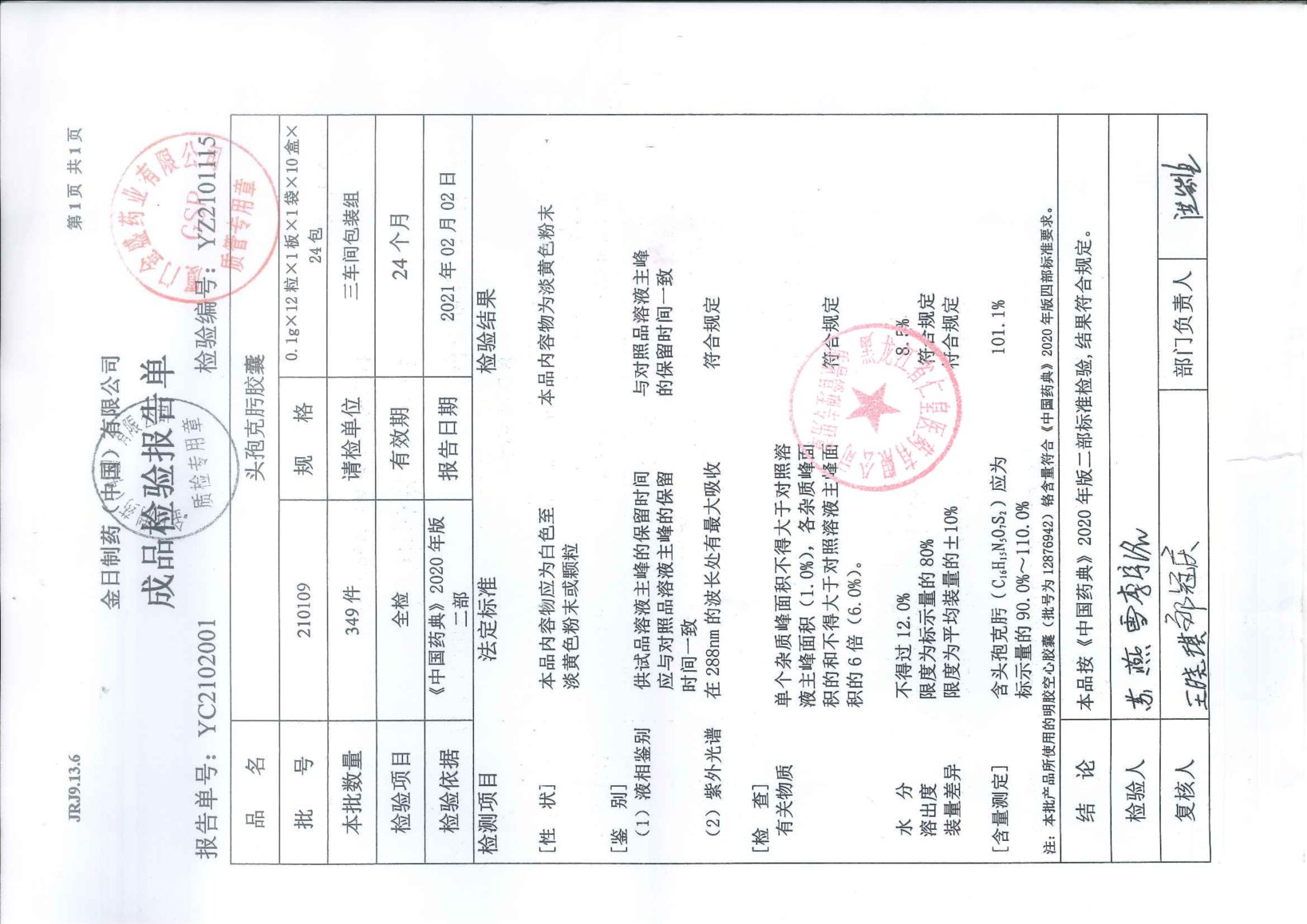 头孢克肟胶囊2101