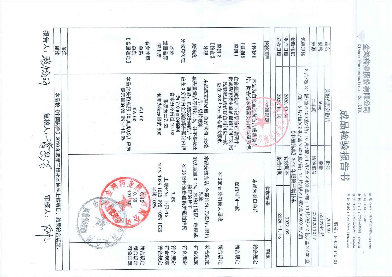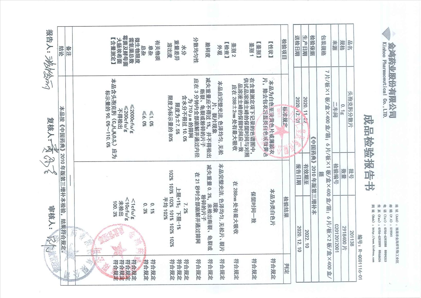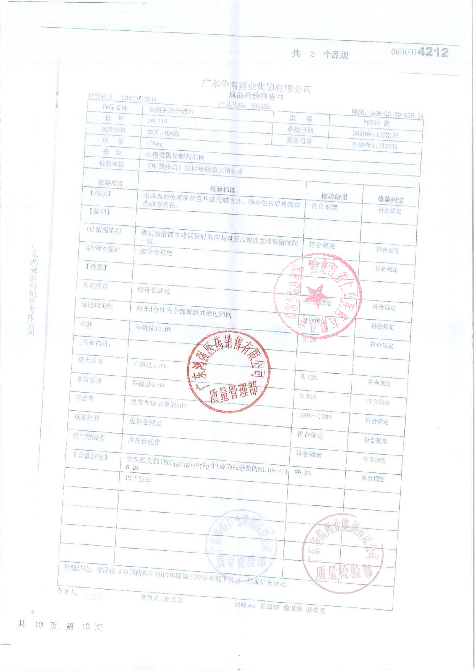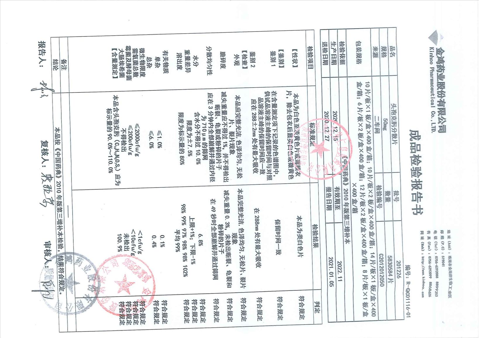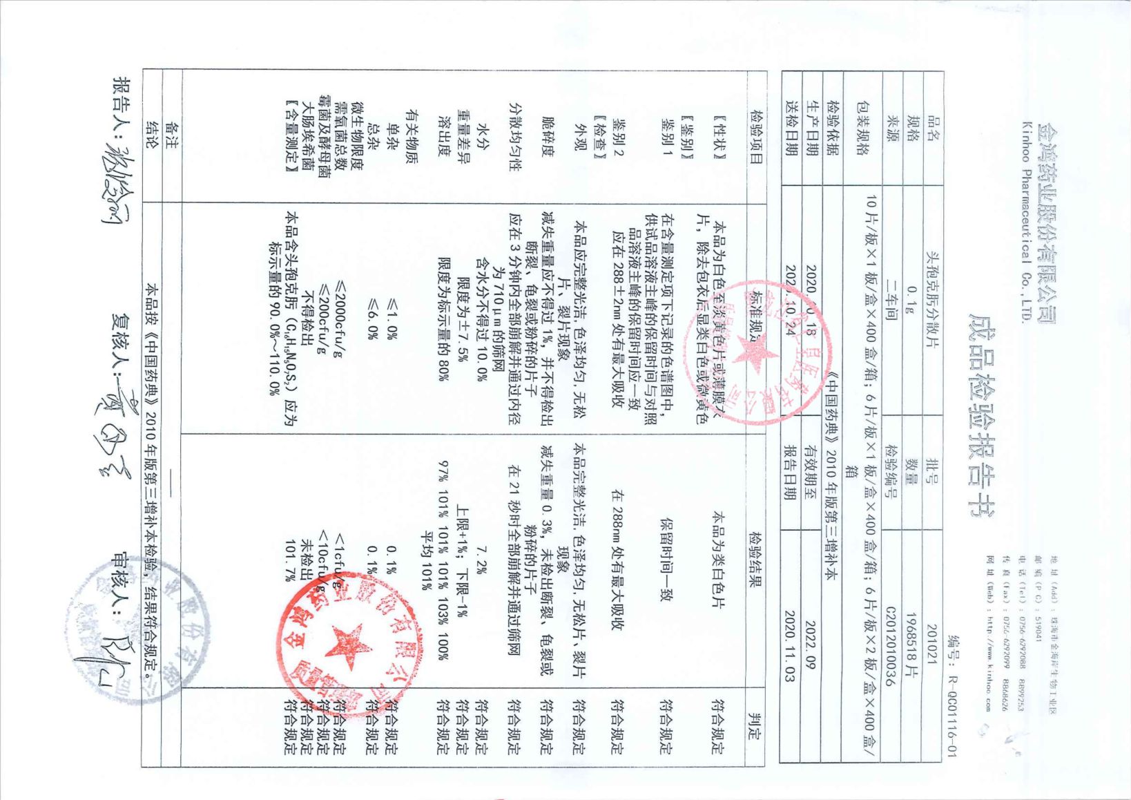头孢克肟分散片201