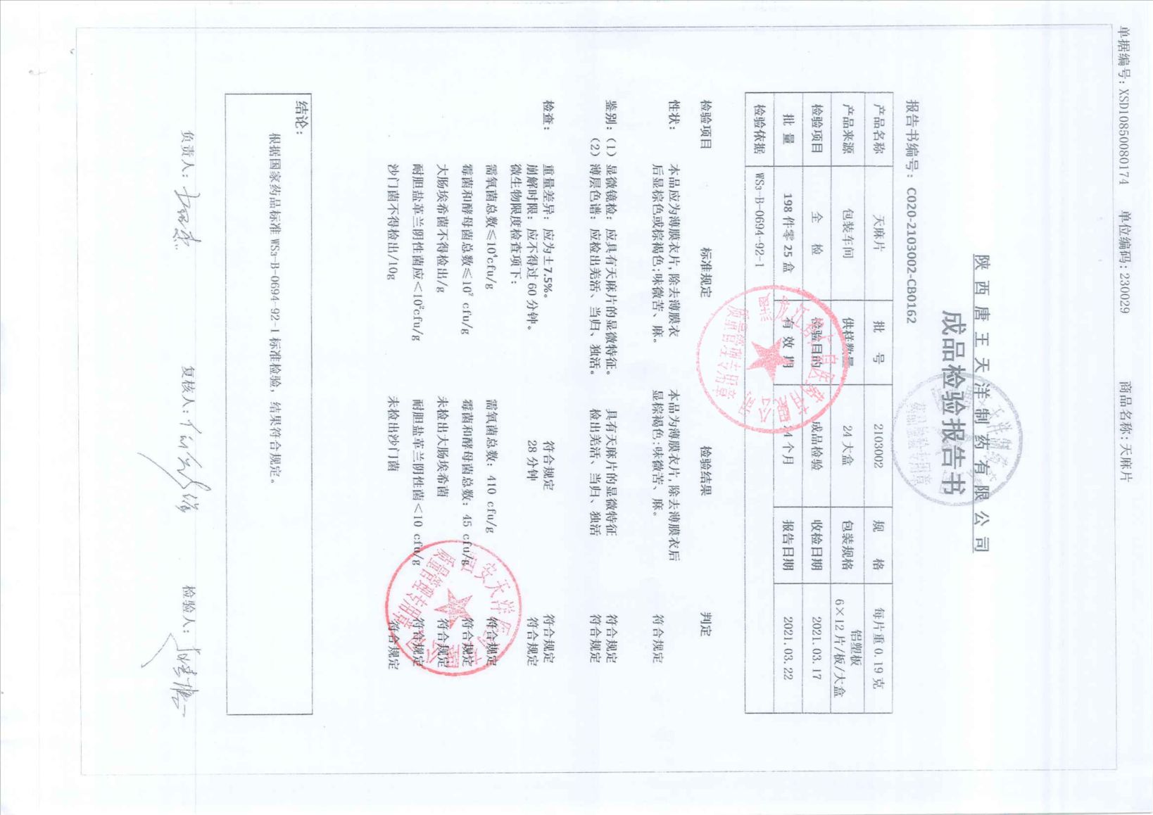 天麻片2103002