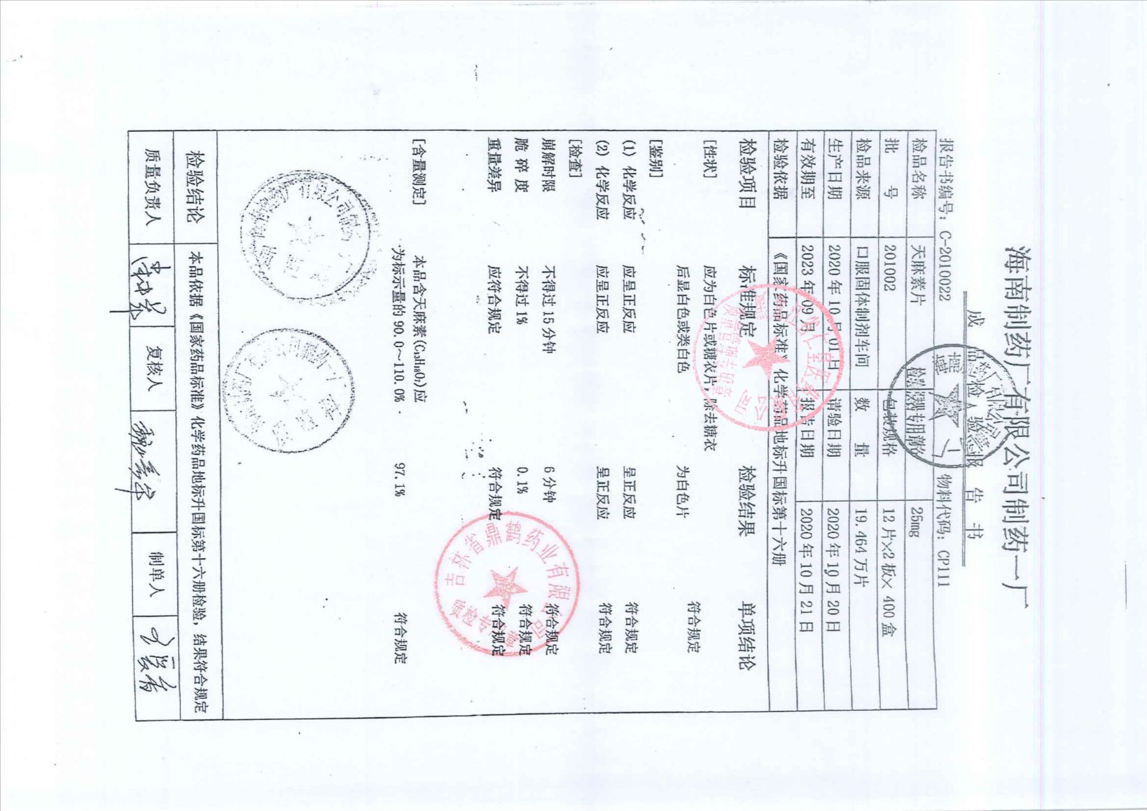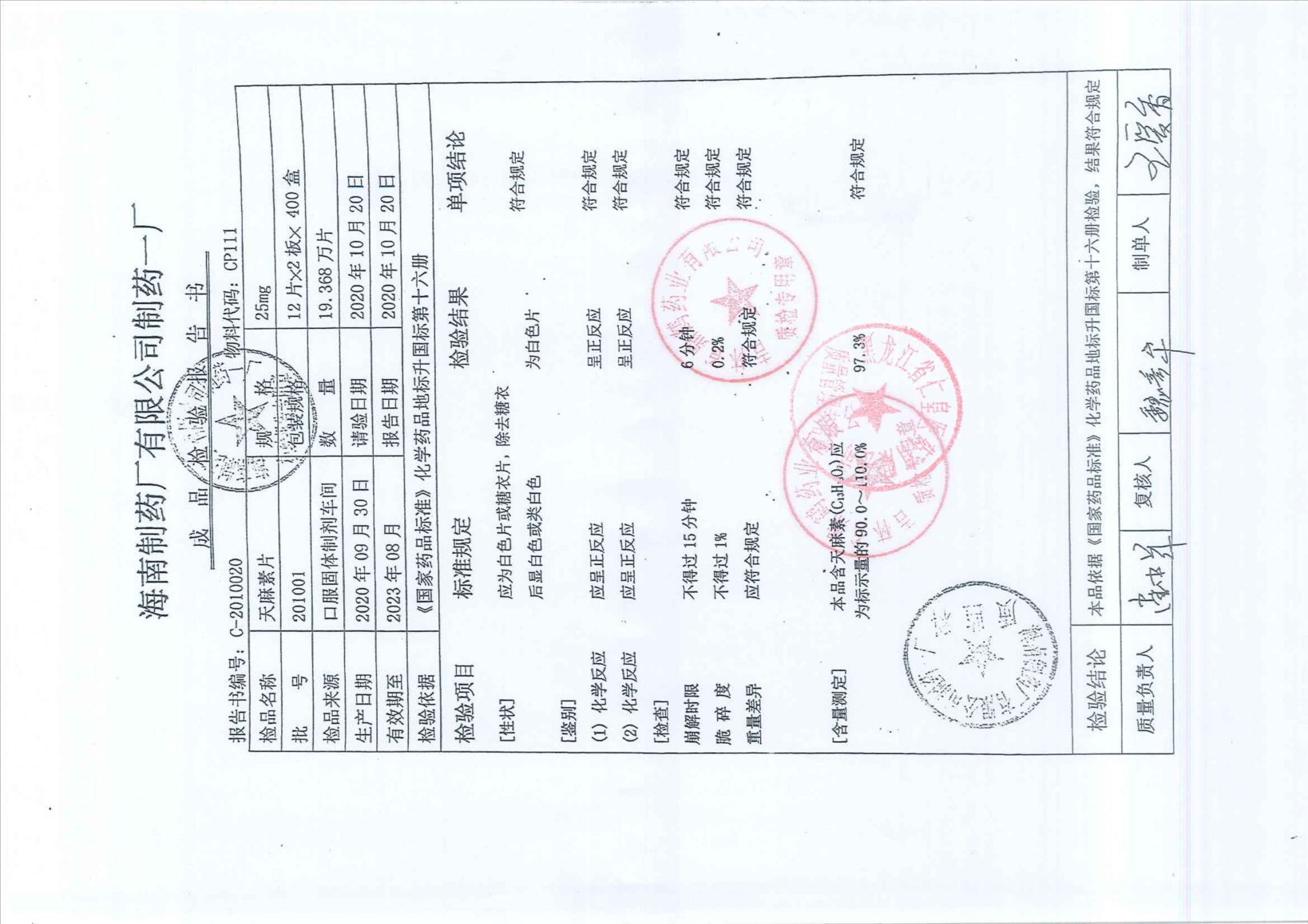 天麻素片201002