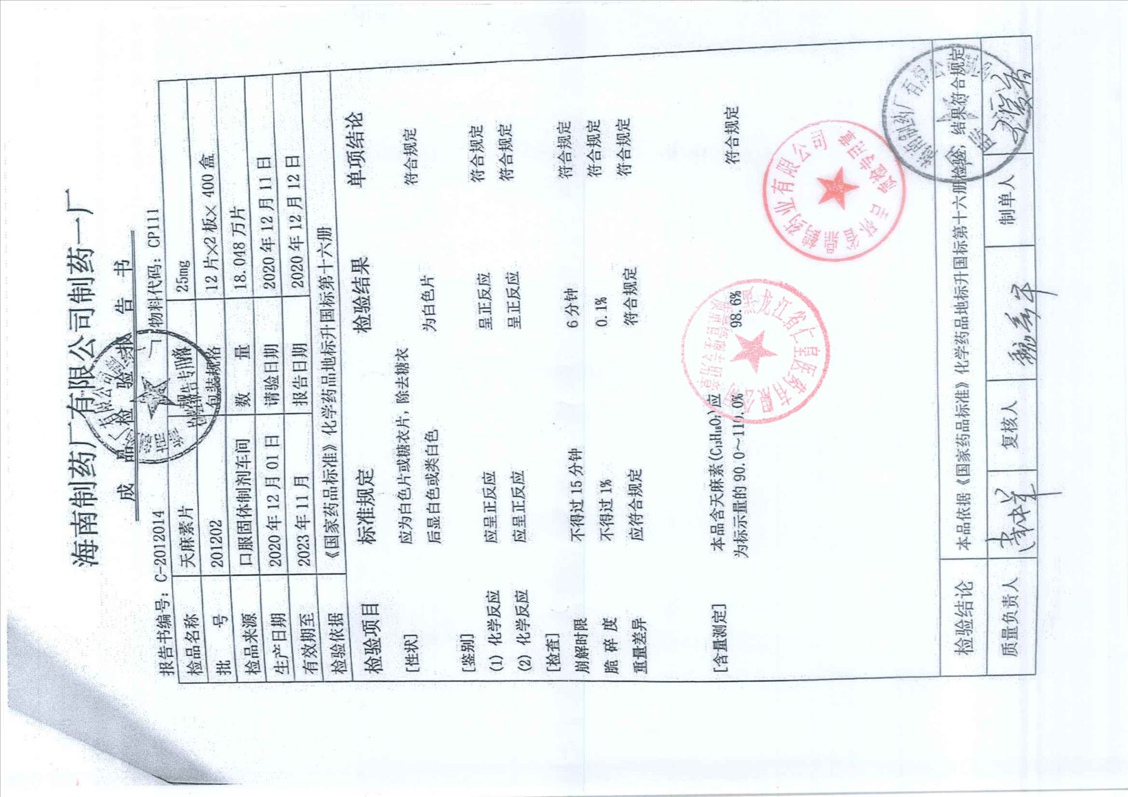 天麻素片201202