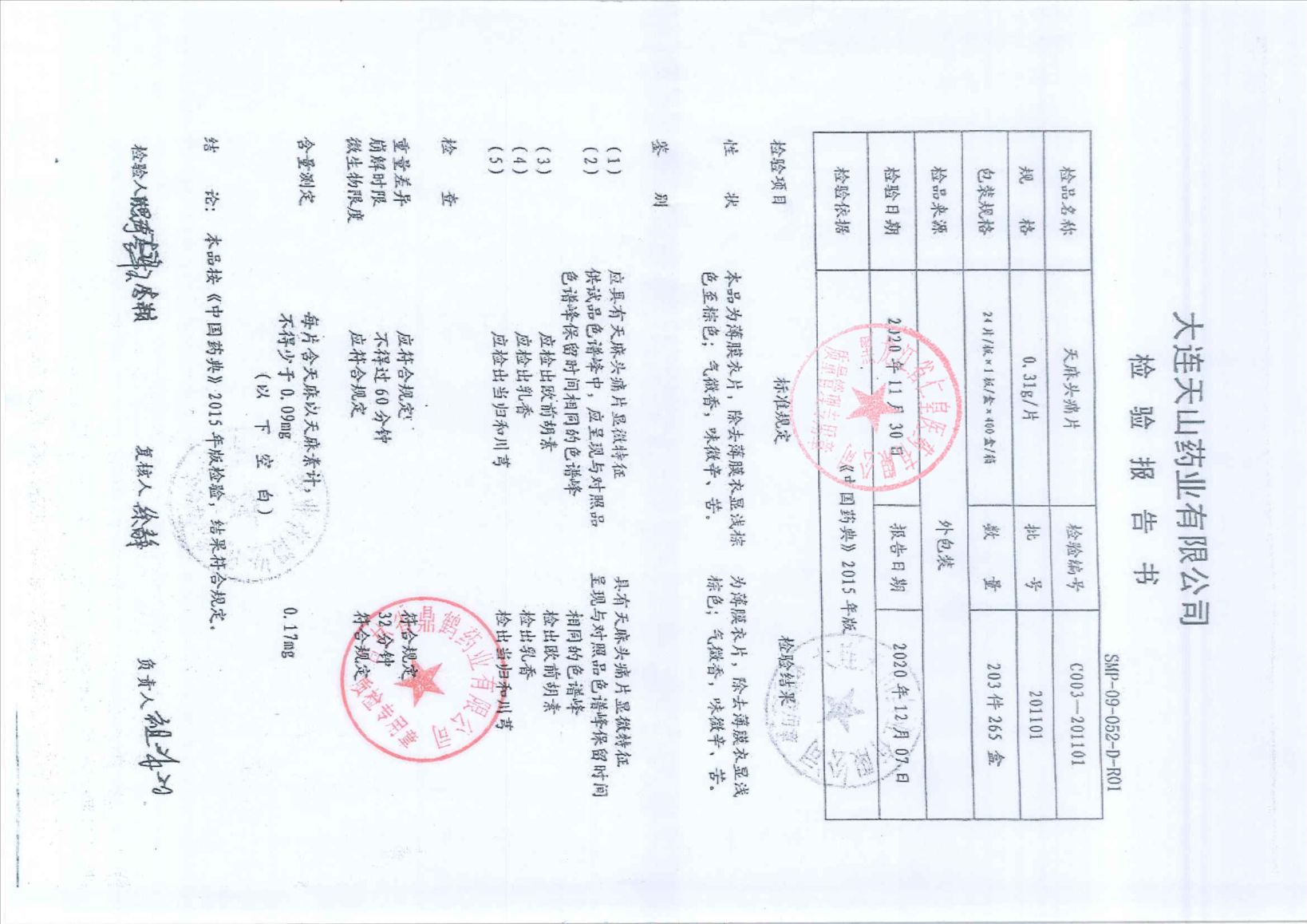 天麻素片201201