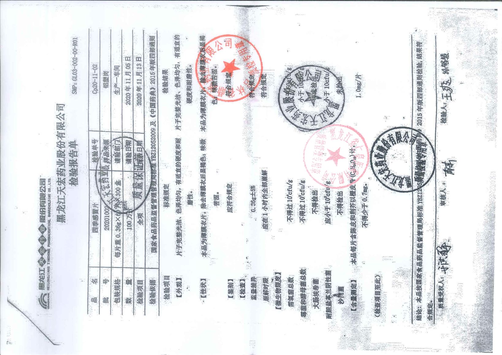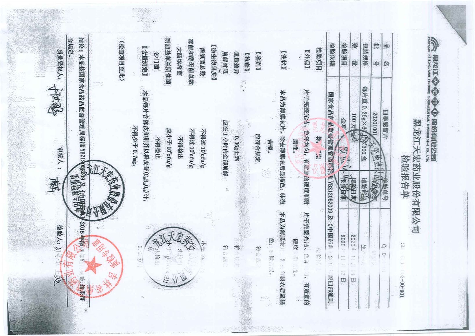 四季感冒片20201