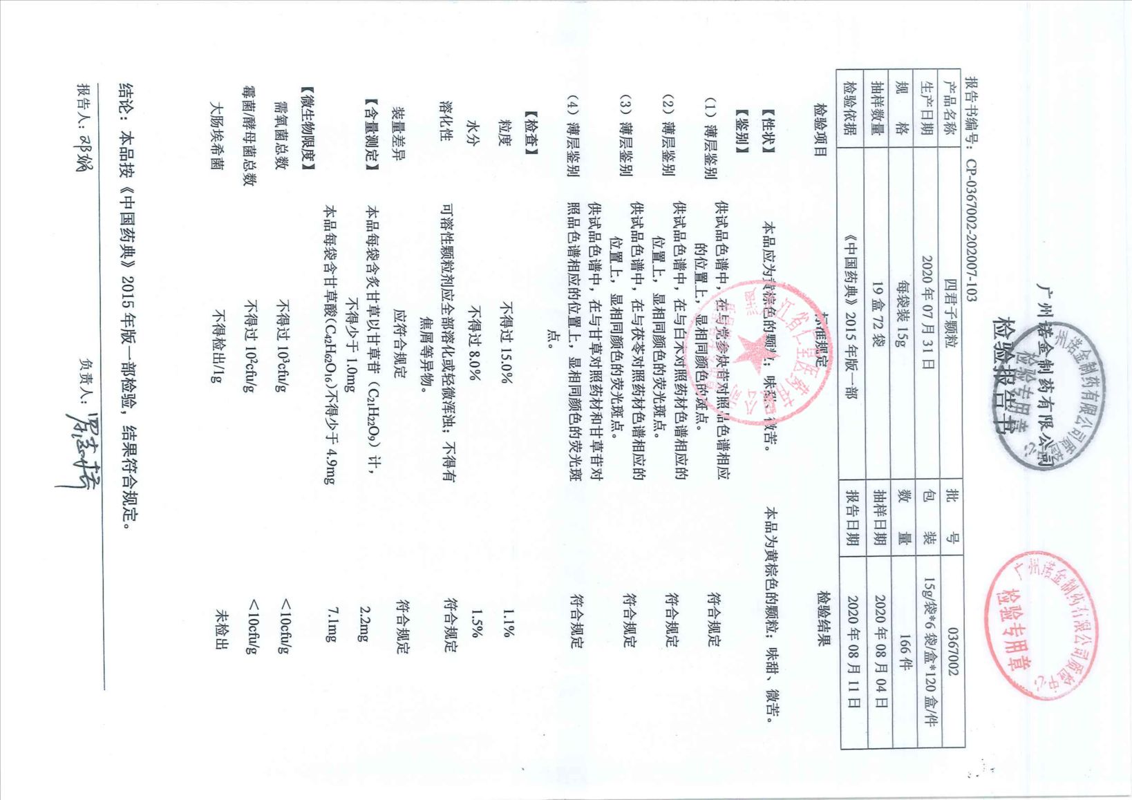 四君子颗粒03670