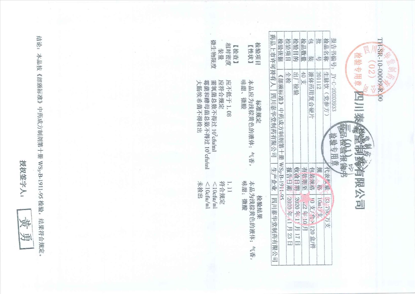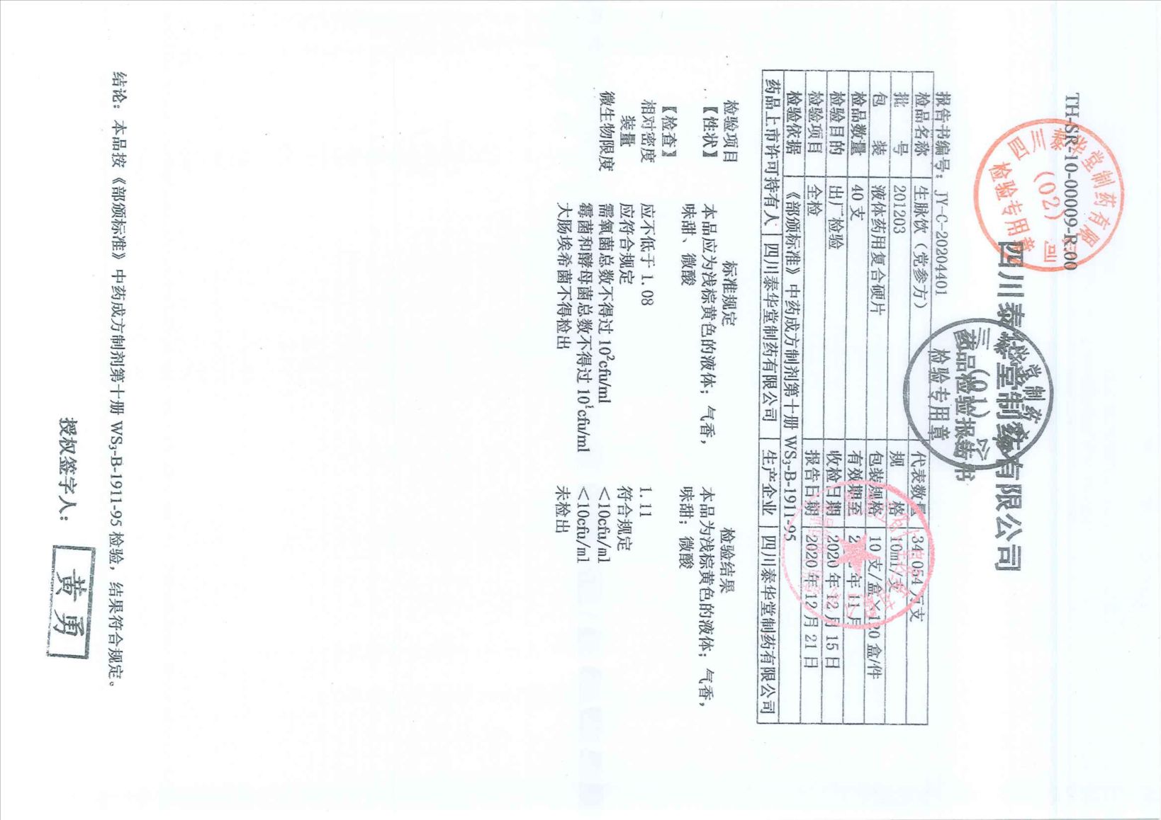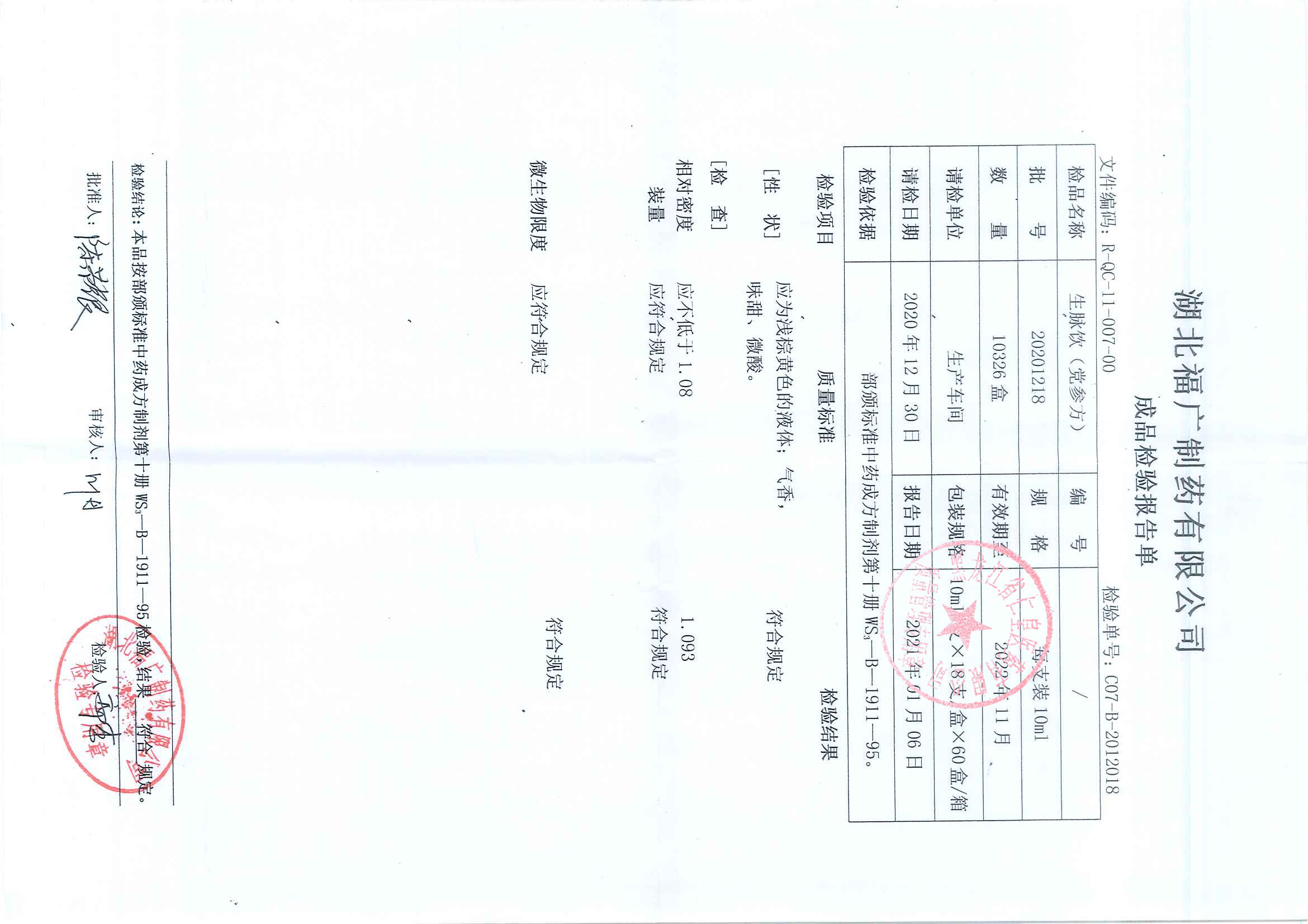 生脉饮2020110