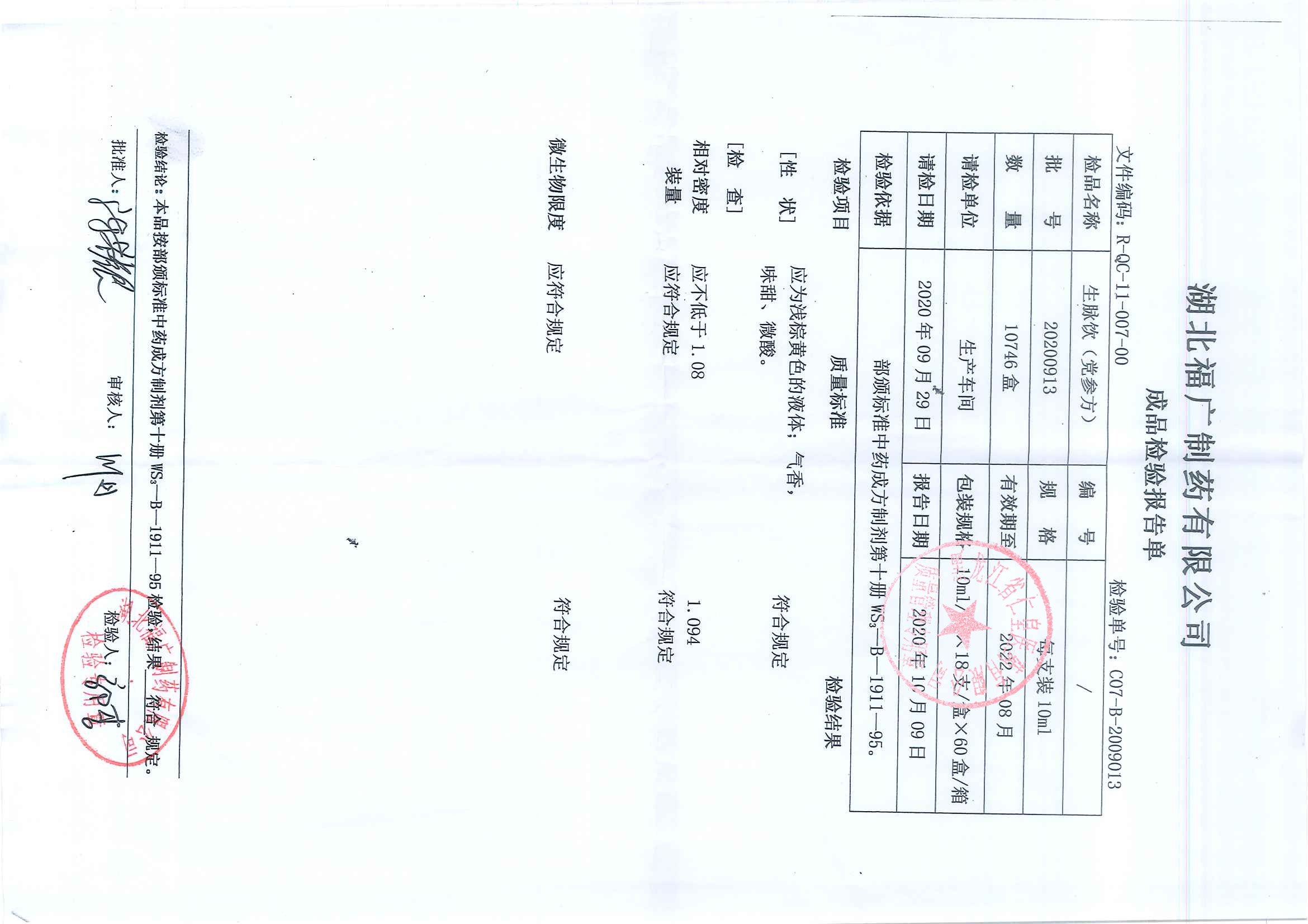 生脉饮2020091