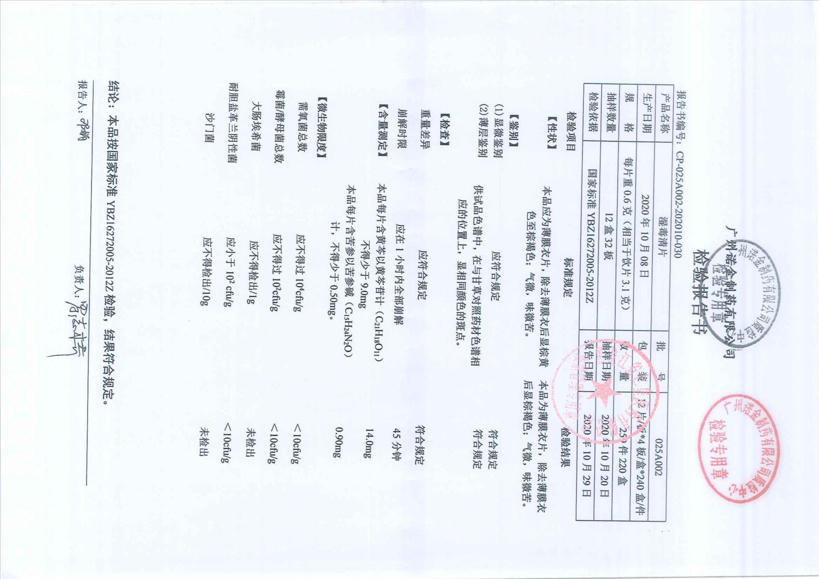 湿毒清片025A00