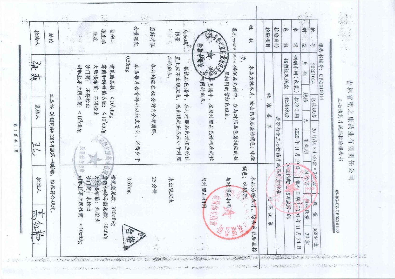 三七伤药片20201