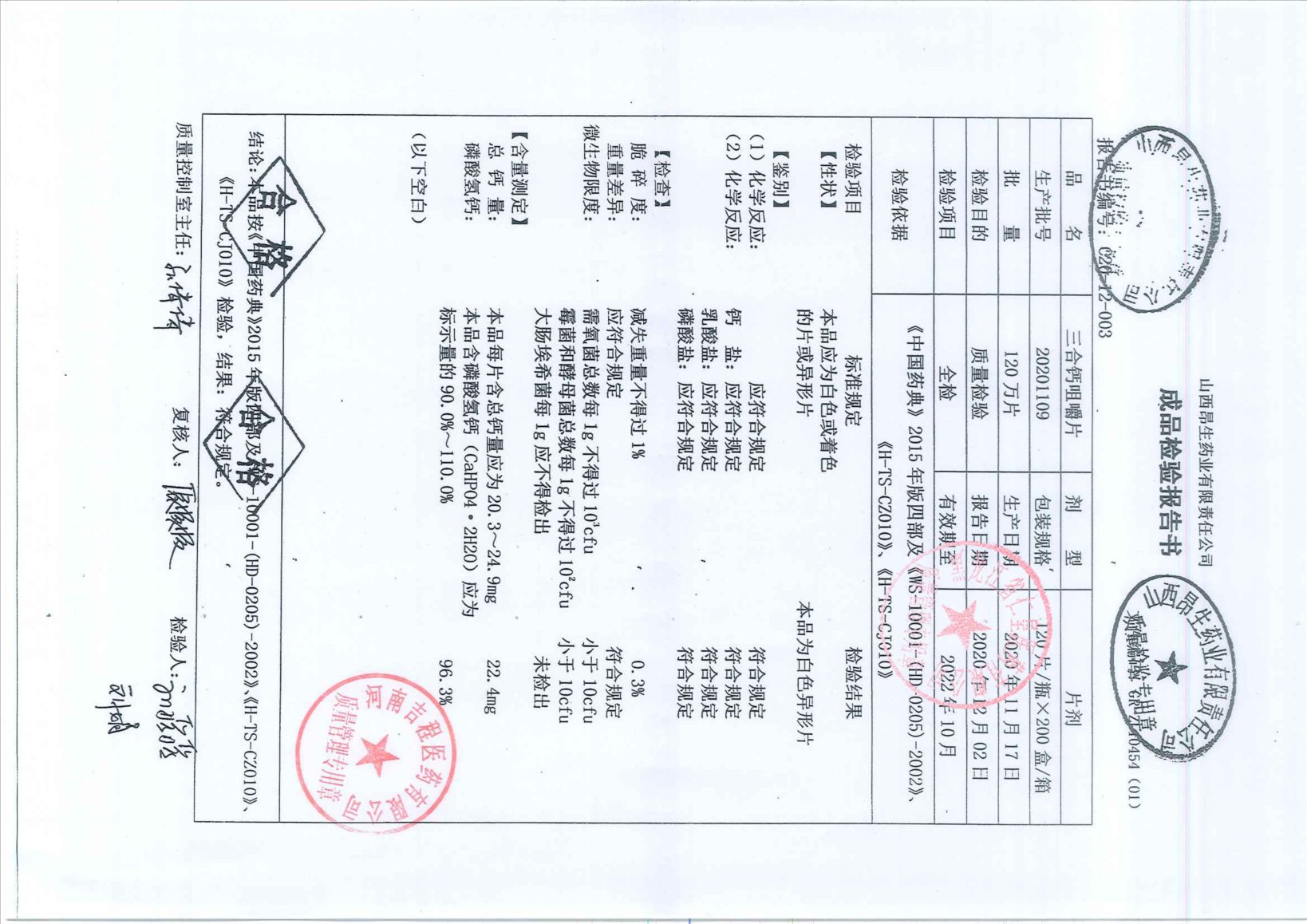 三合钙咀嚼片2020