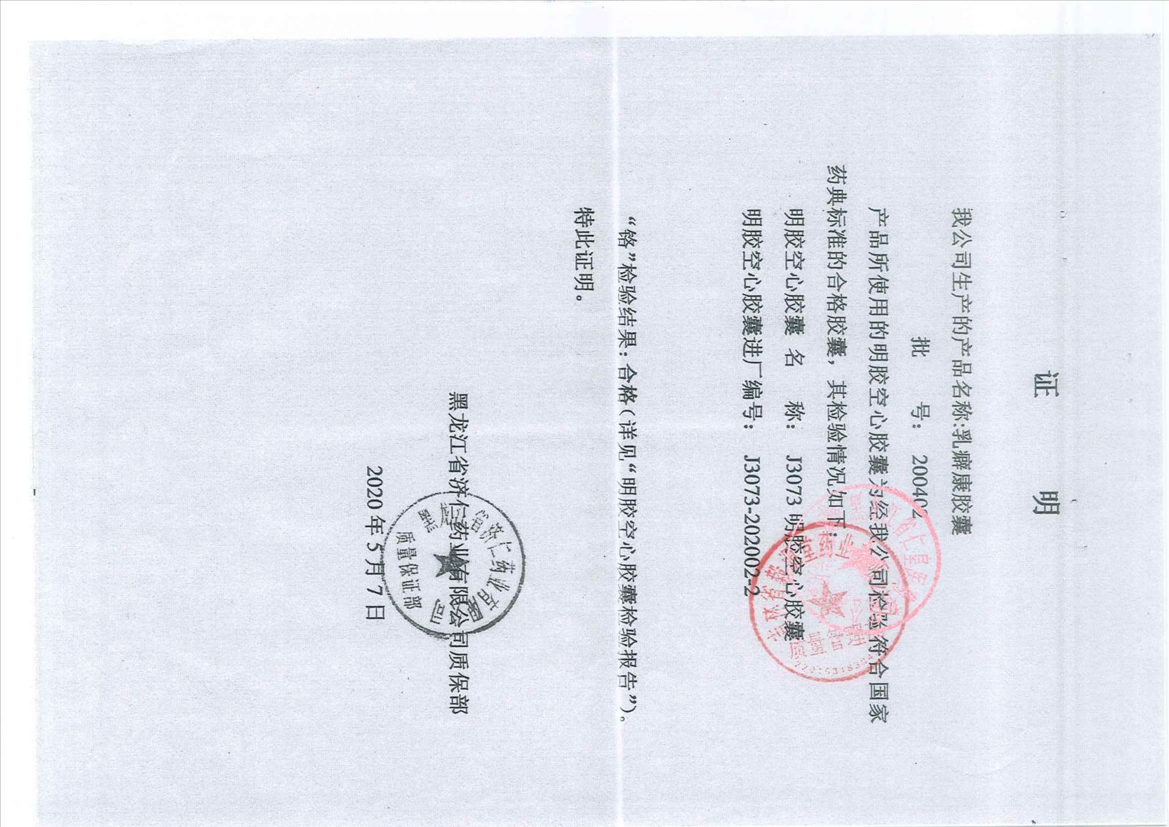 乳癖康胶囊20040