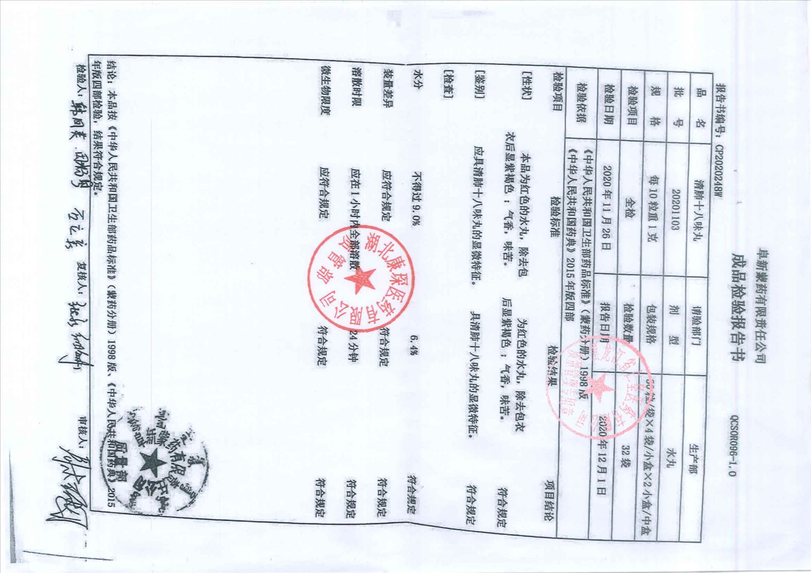 清肺十八味丸2020