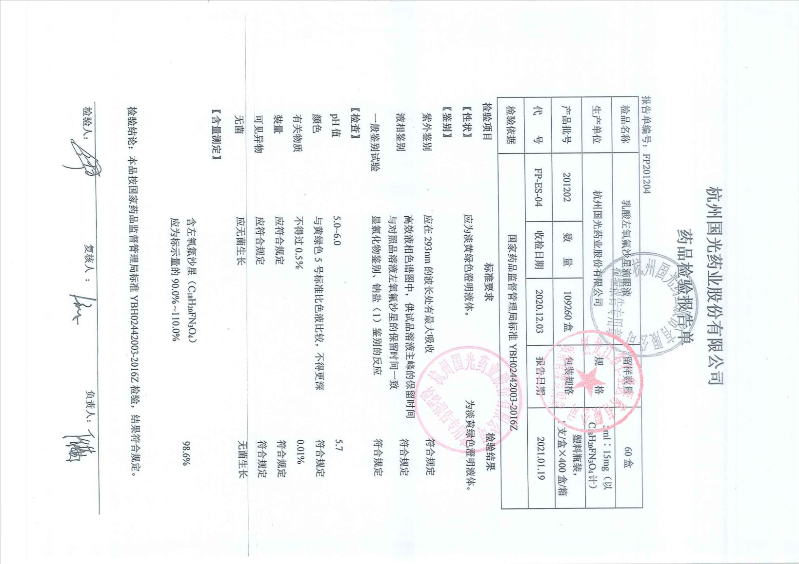 乳酸左氧氟沙星滴眼液