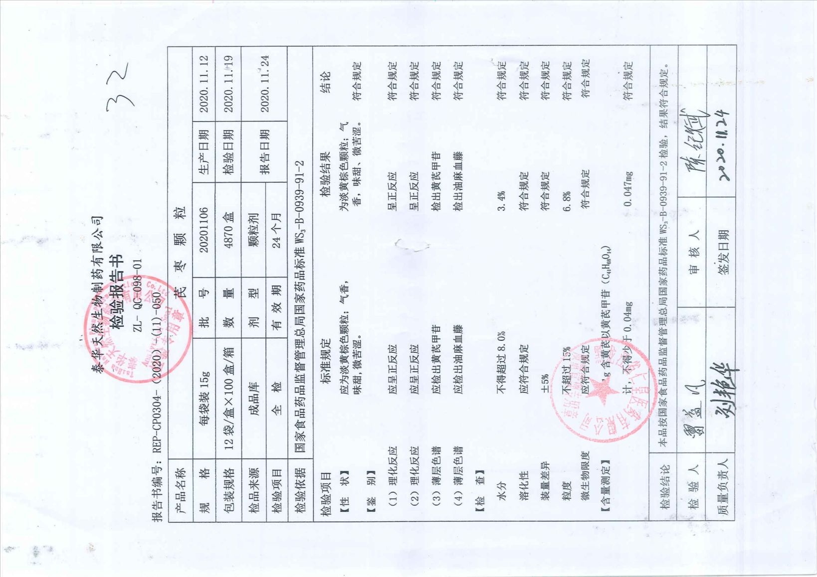 芪枣颗粒202011