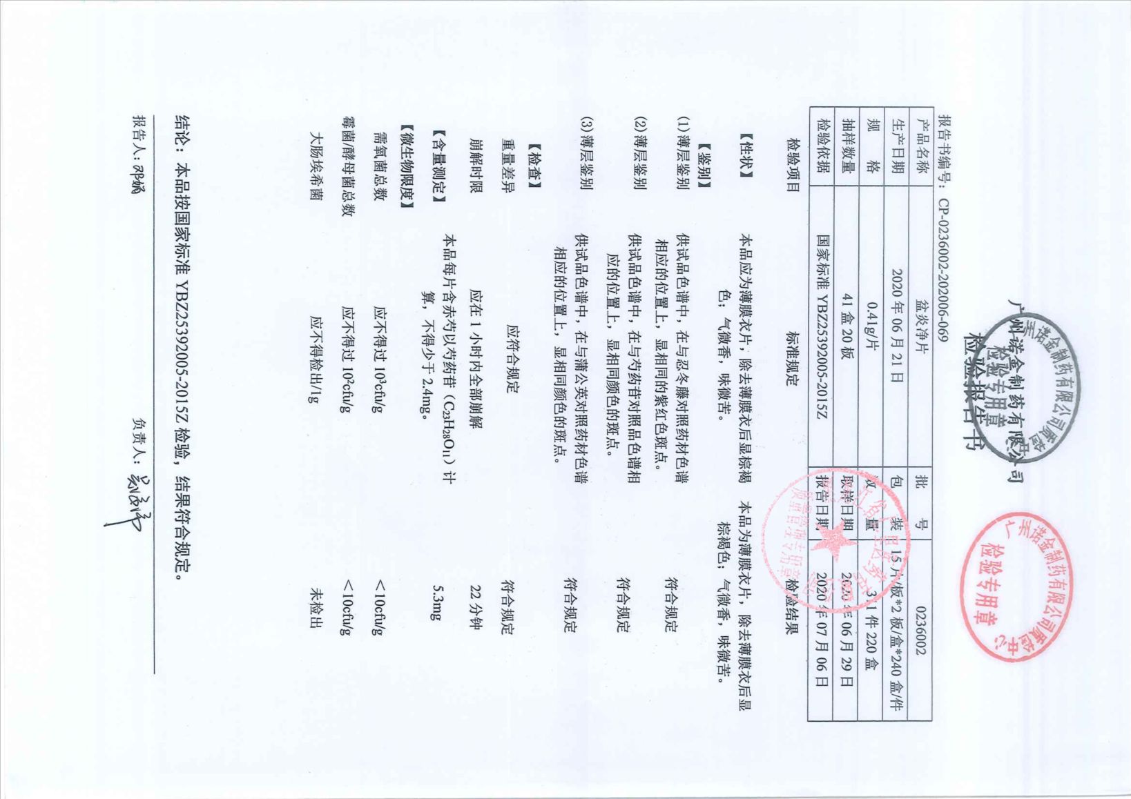 盆炎净片023600