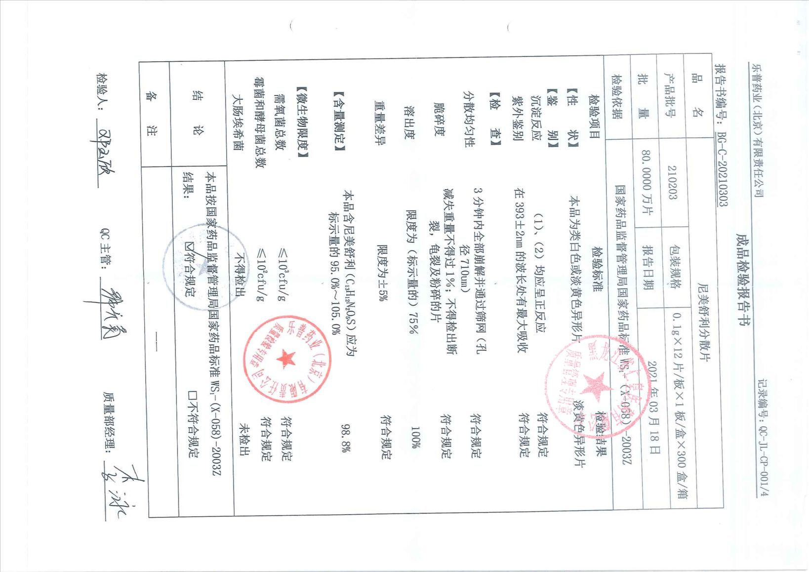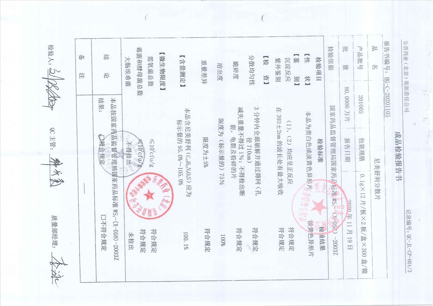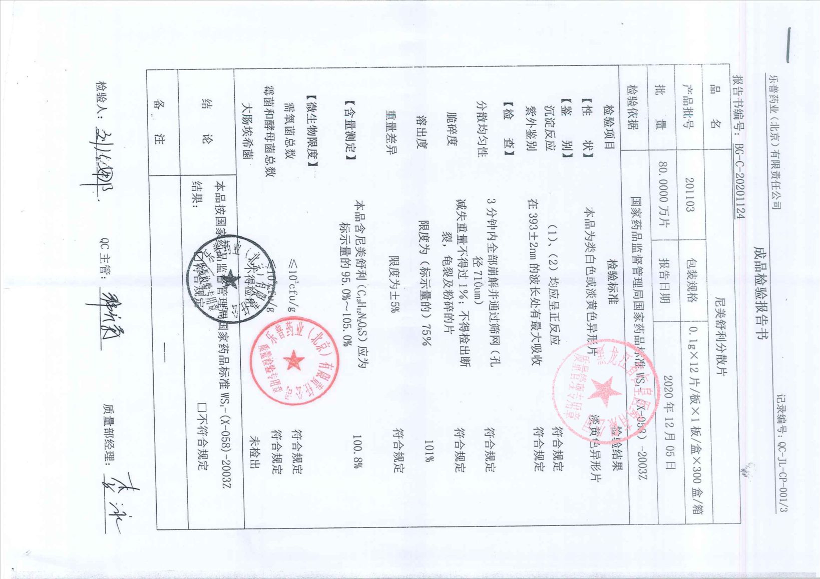 尼美舒利分散片201