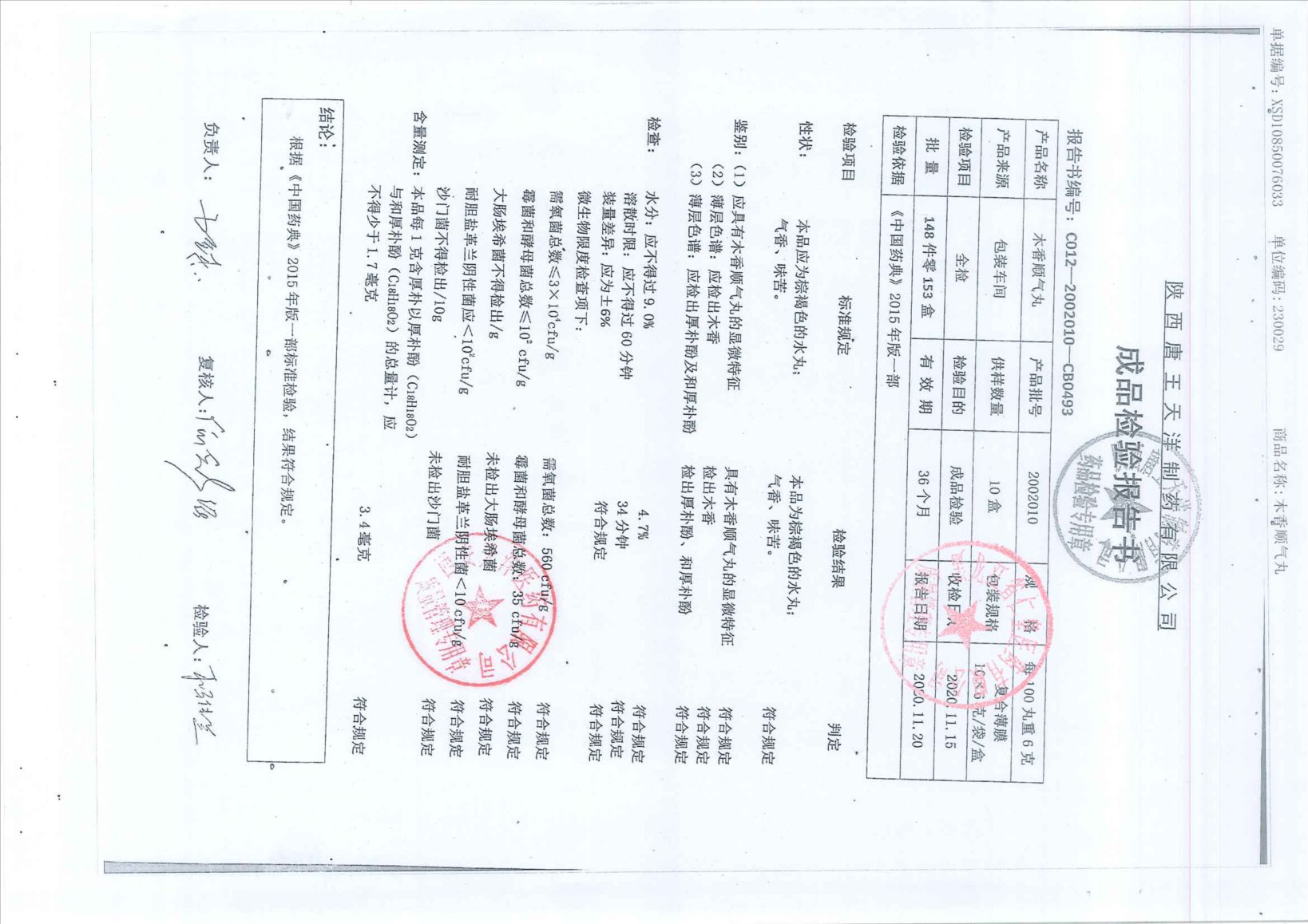木香顺气丸20023