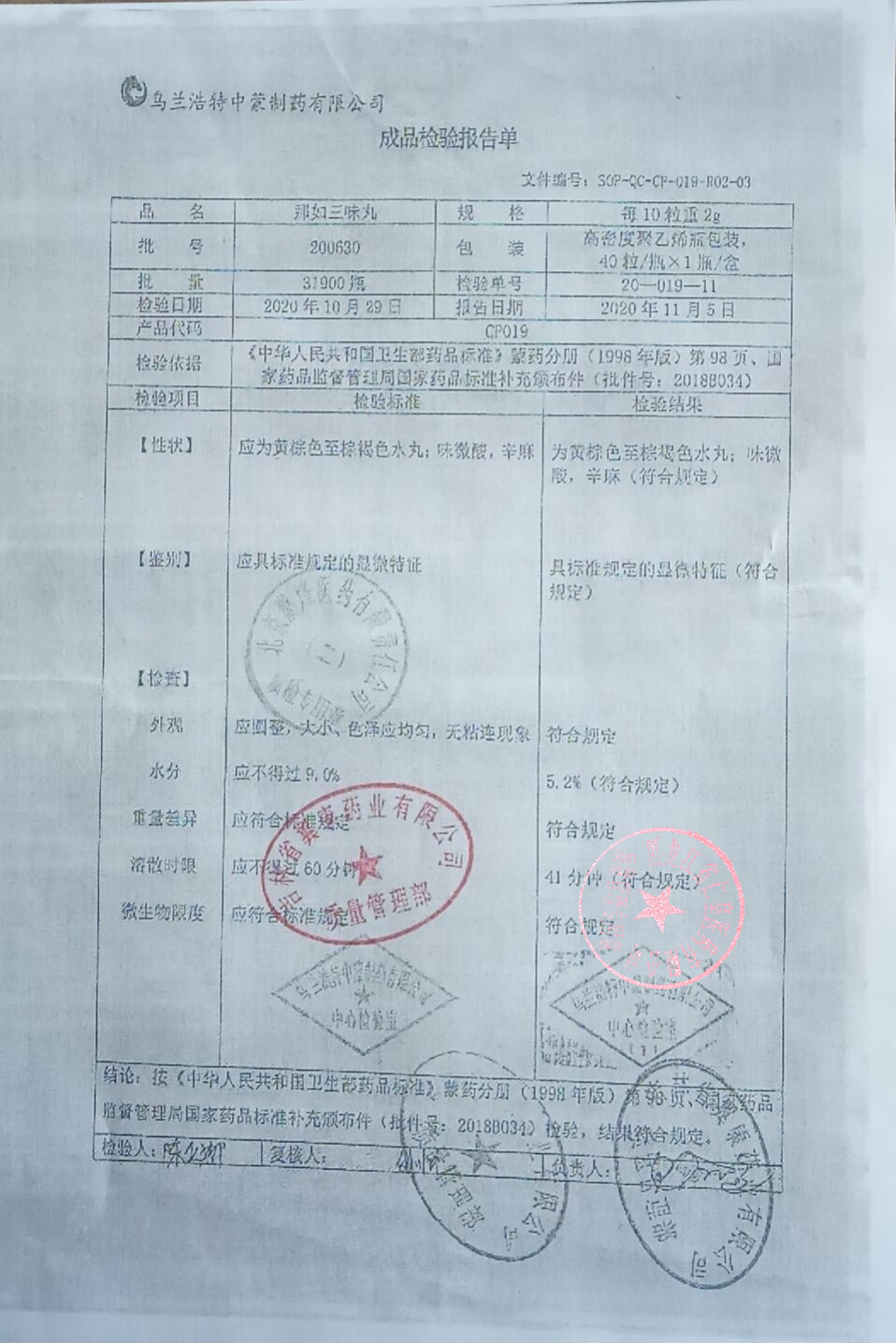 木香顺气丸20020
