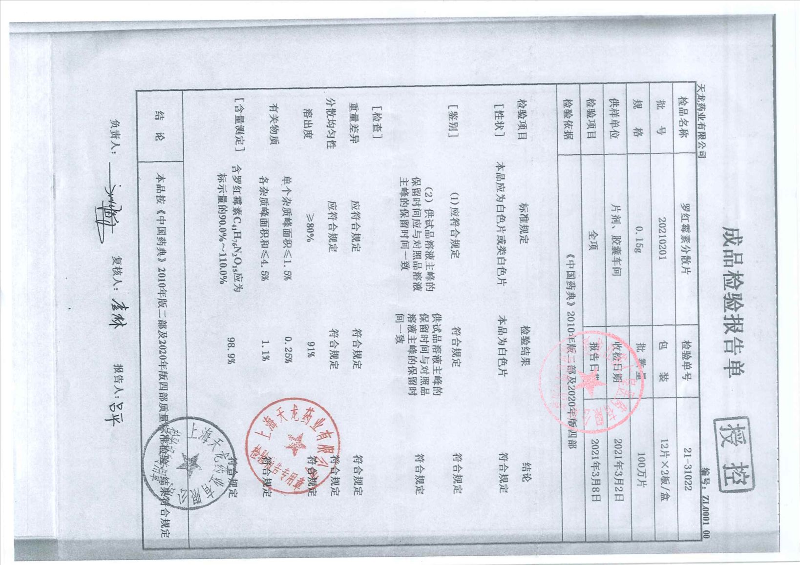 罗红霉素片20201