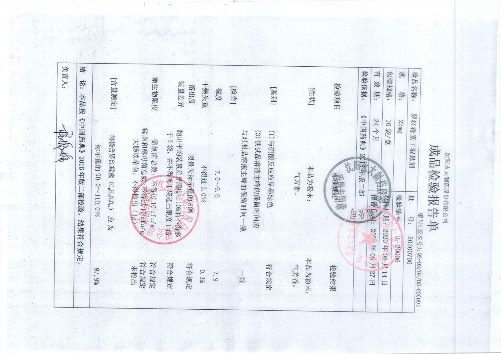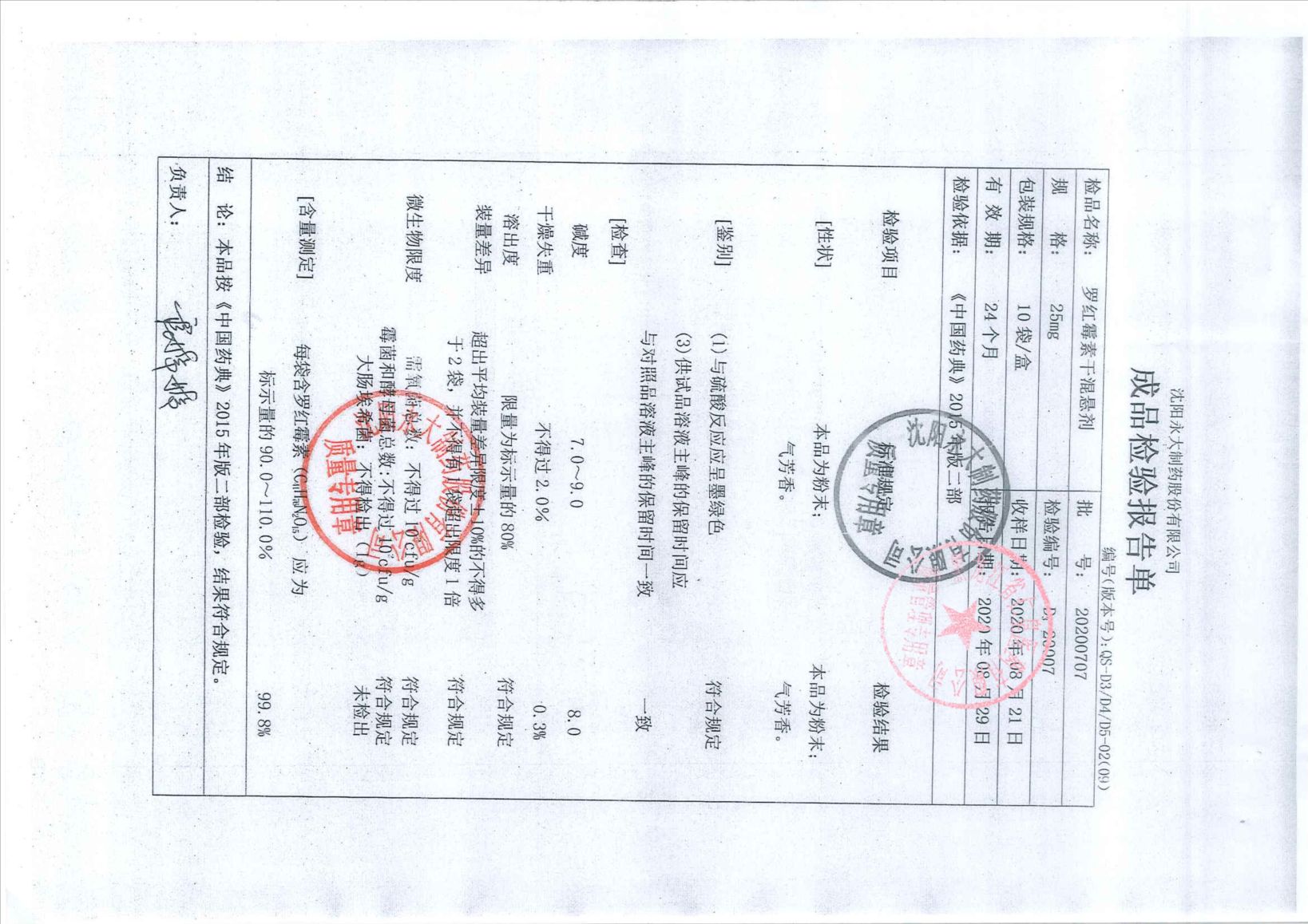 罗红霉素干混悬剂20
