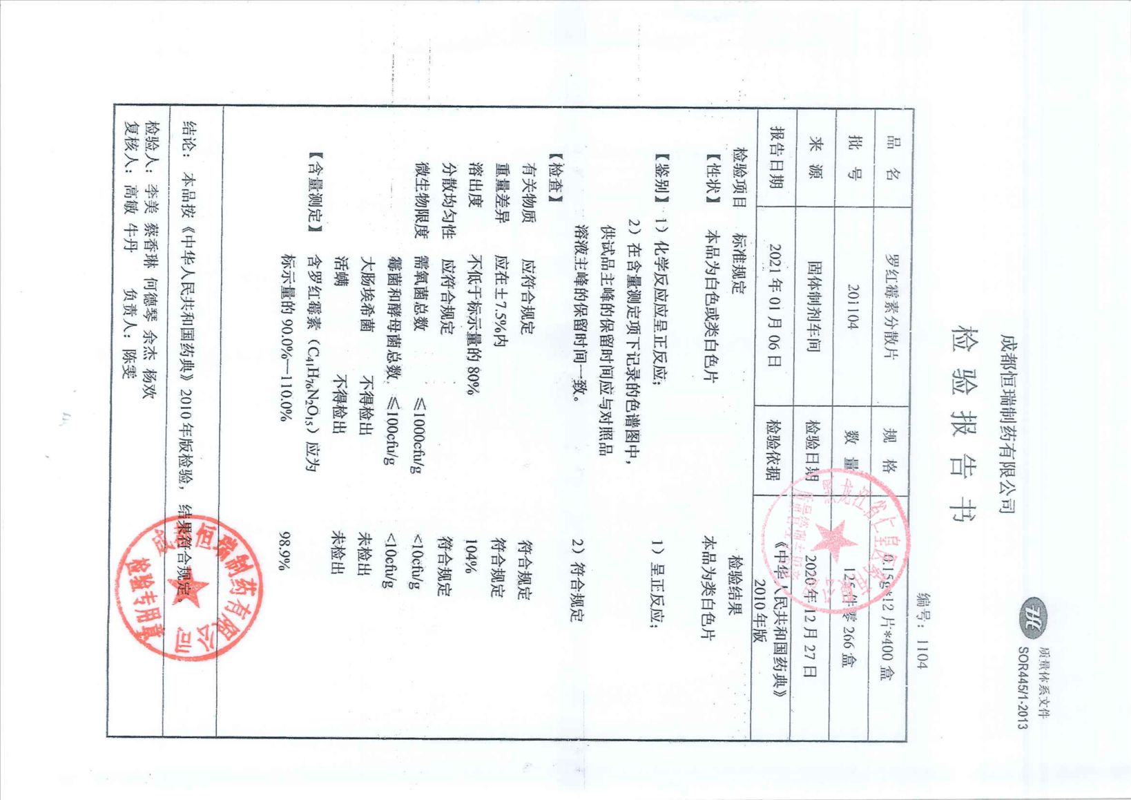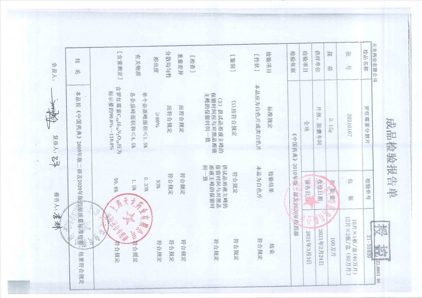 罗红霉素分散片201