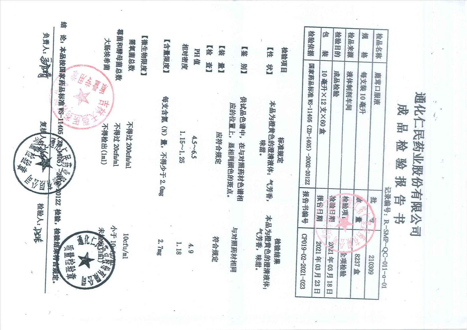 鹿茸口服液21030