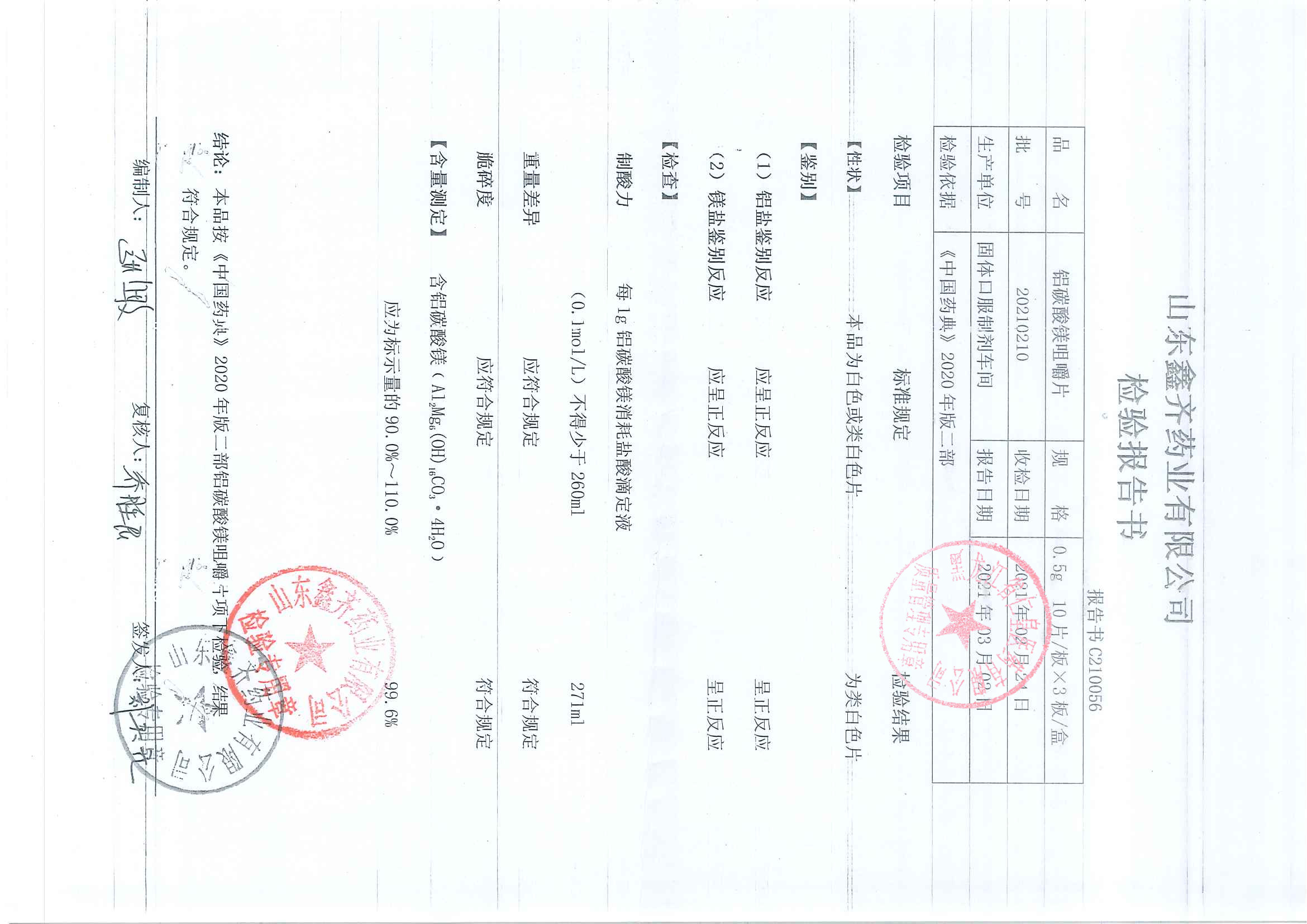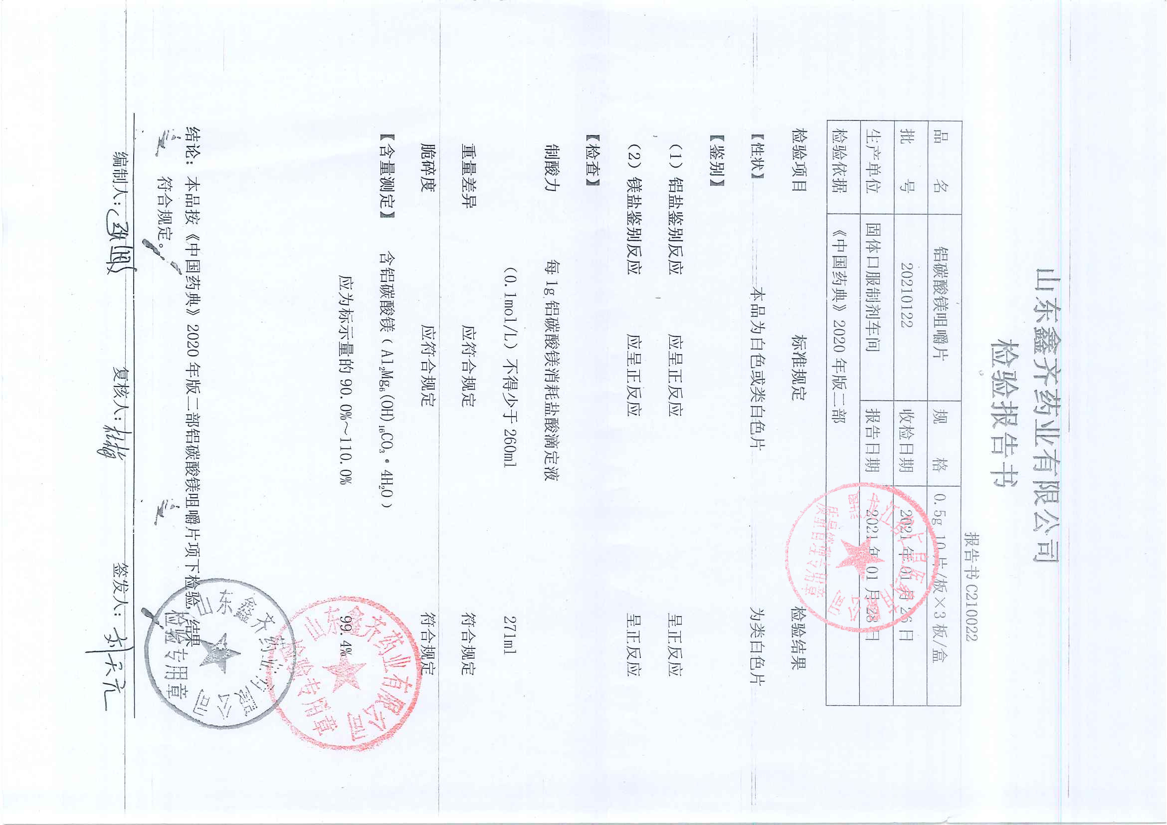 铝碳酸镁咀嚼片202