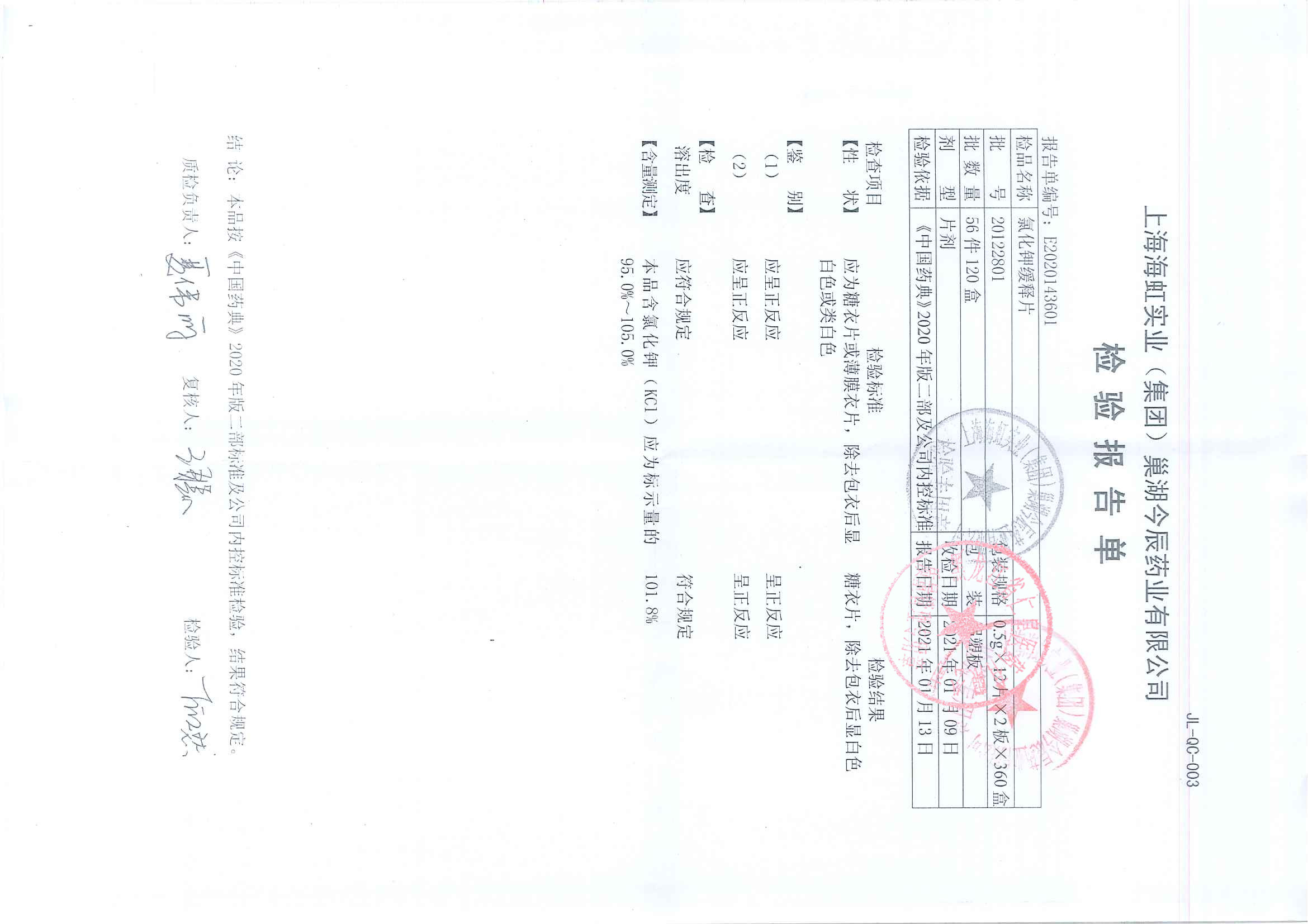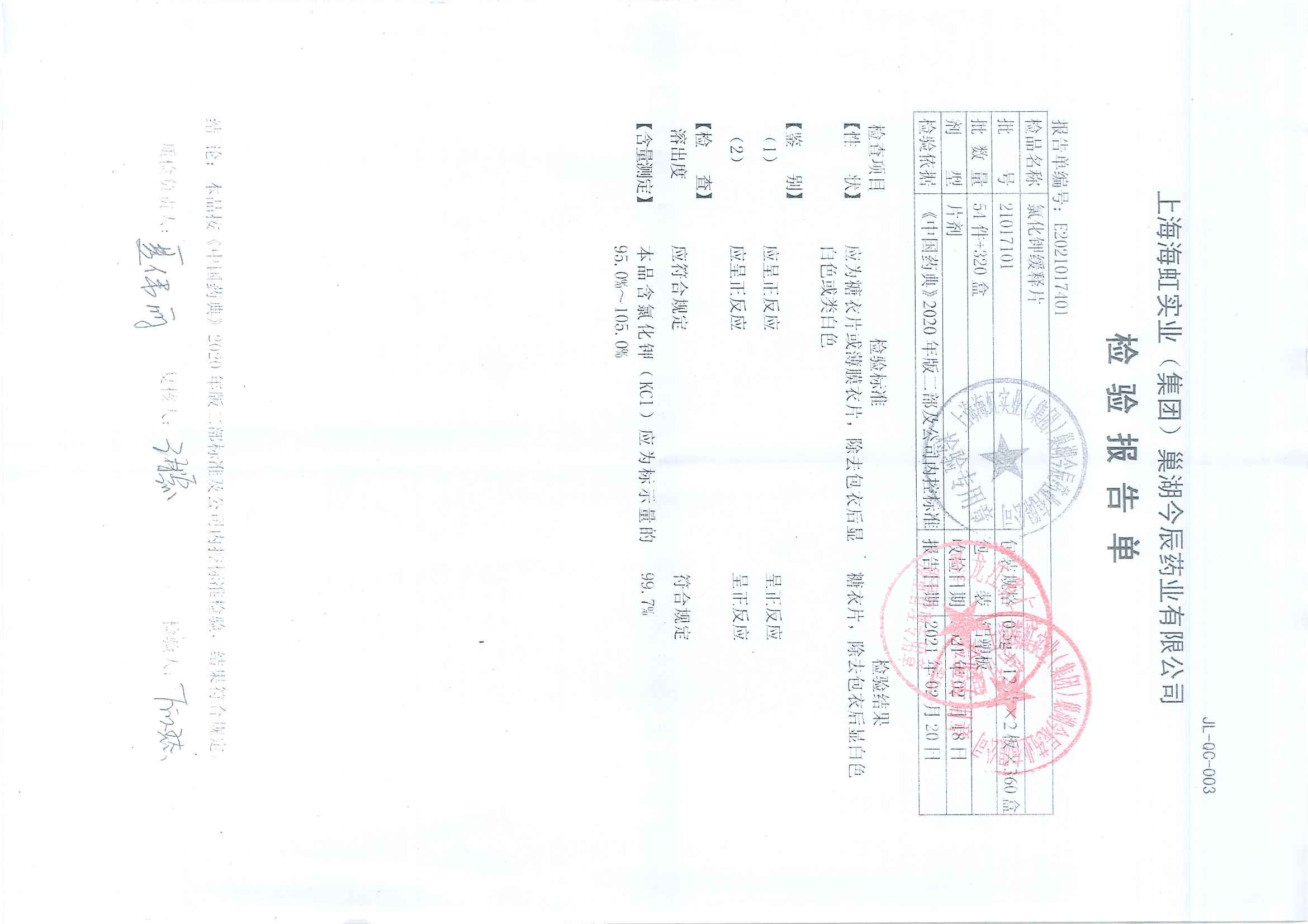 氯化钾缓释片2101