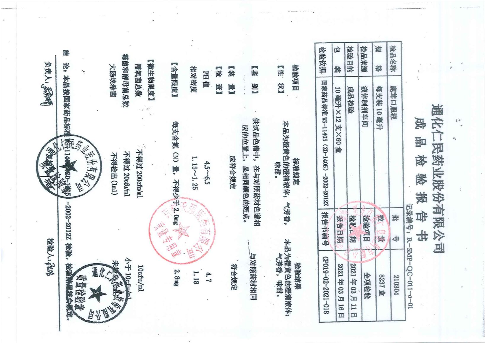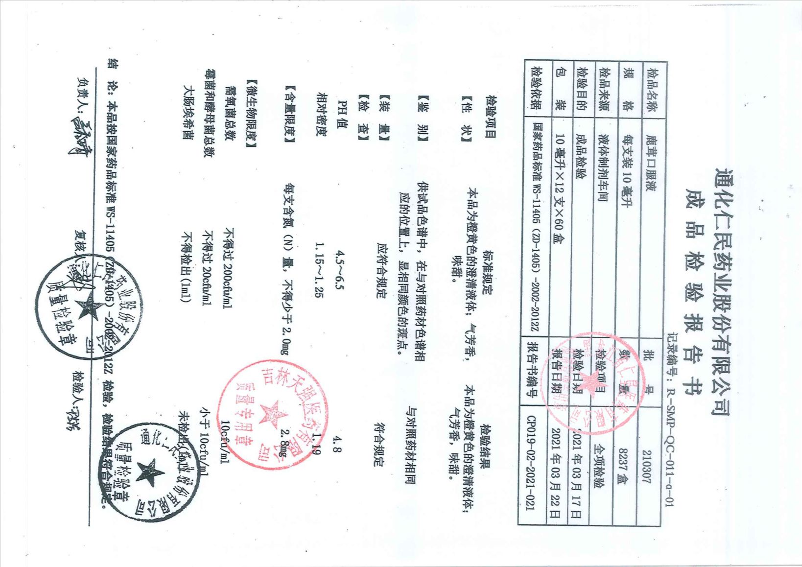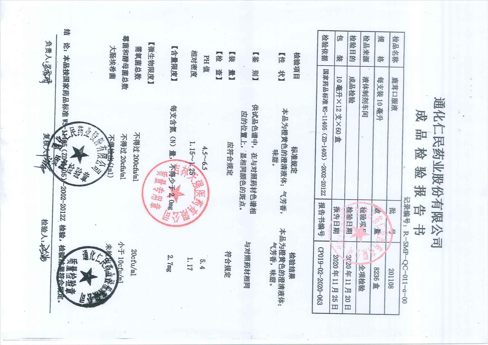 鹿茸口服液20110